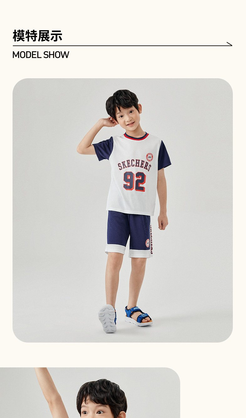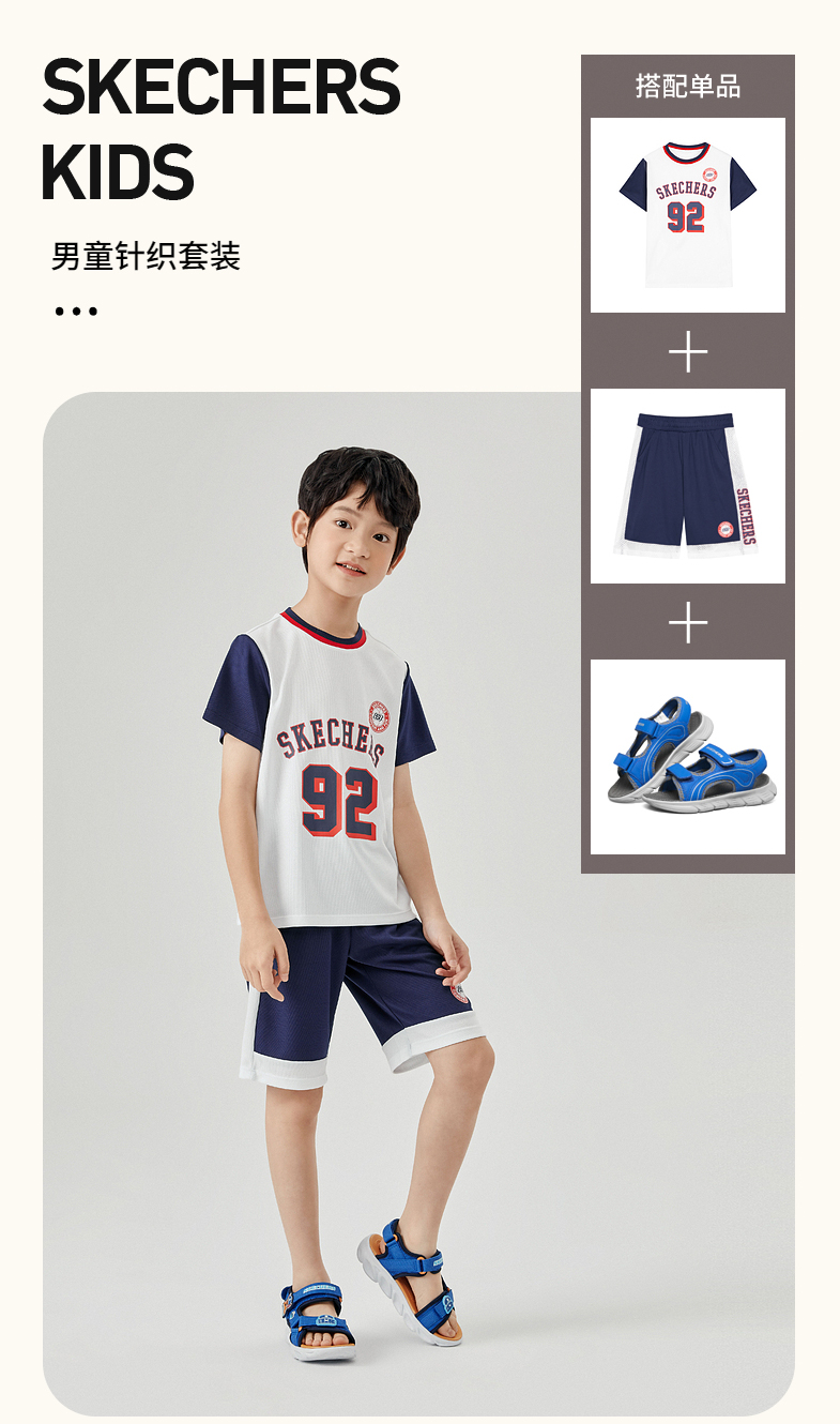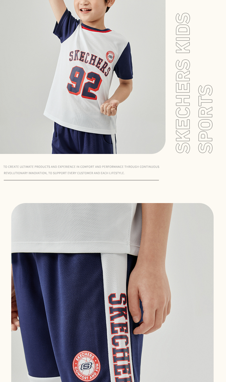 小斯凯奇儿童短袖套装2022夏季新款小童篮球衣男大童运动服P222B030