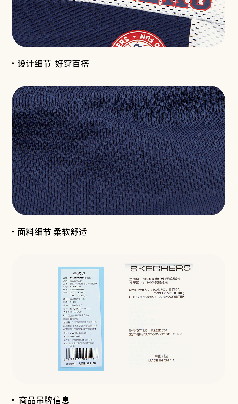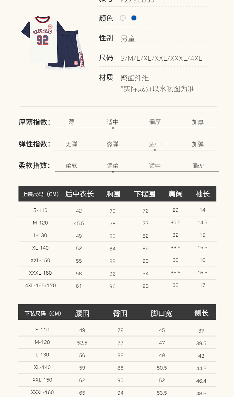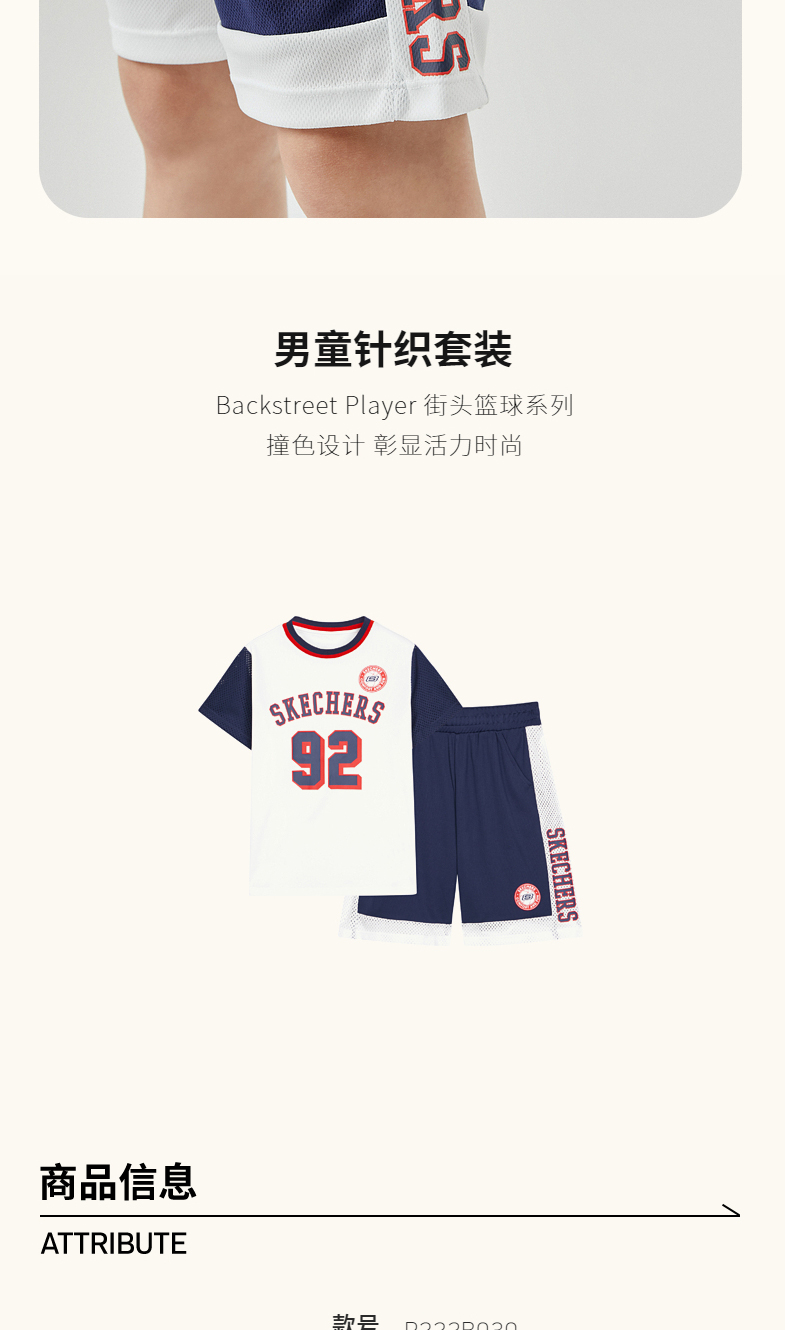 小斯凯奇儿童短袖套装2022夏季新款小童篮球衣男大童运动服P222B030