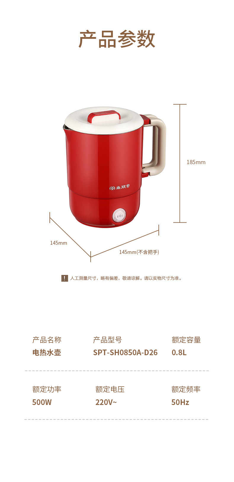 【专柜多样屋】尚朋堂便携式电热水壶小型0.8L 出差旅行多功能烧水杯