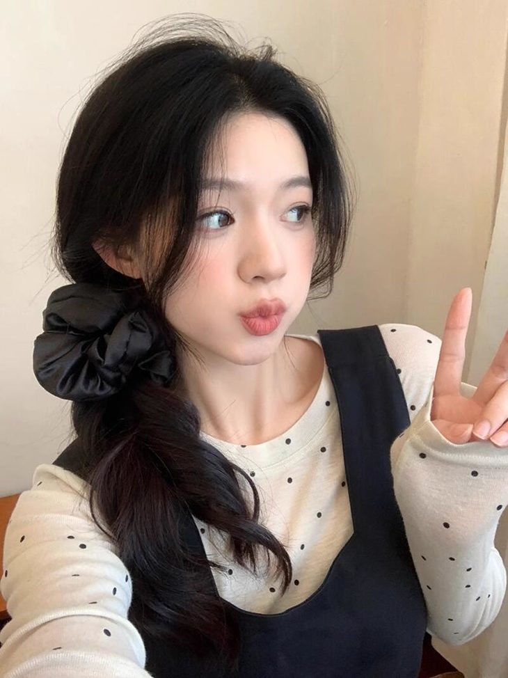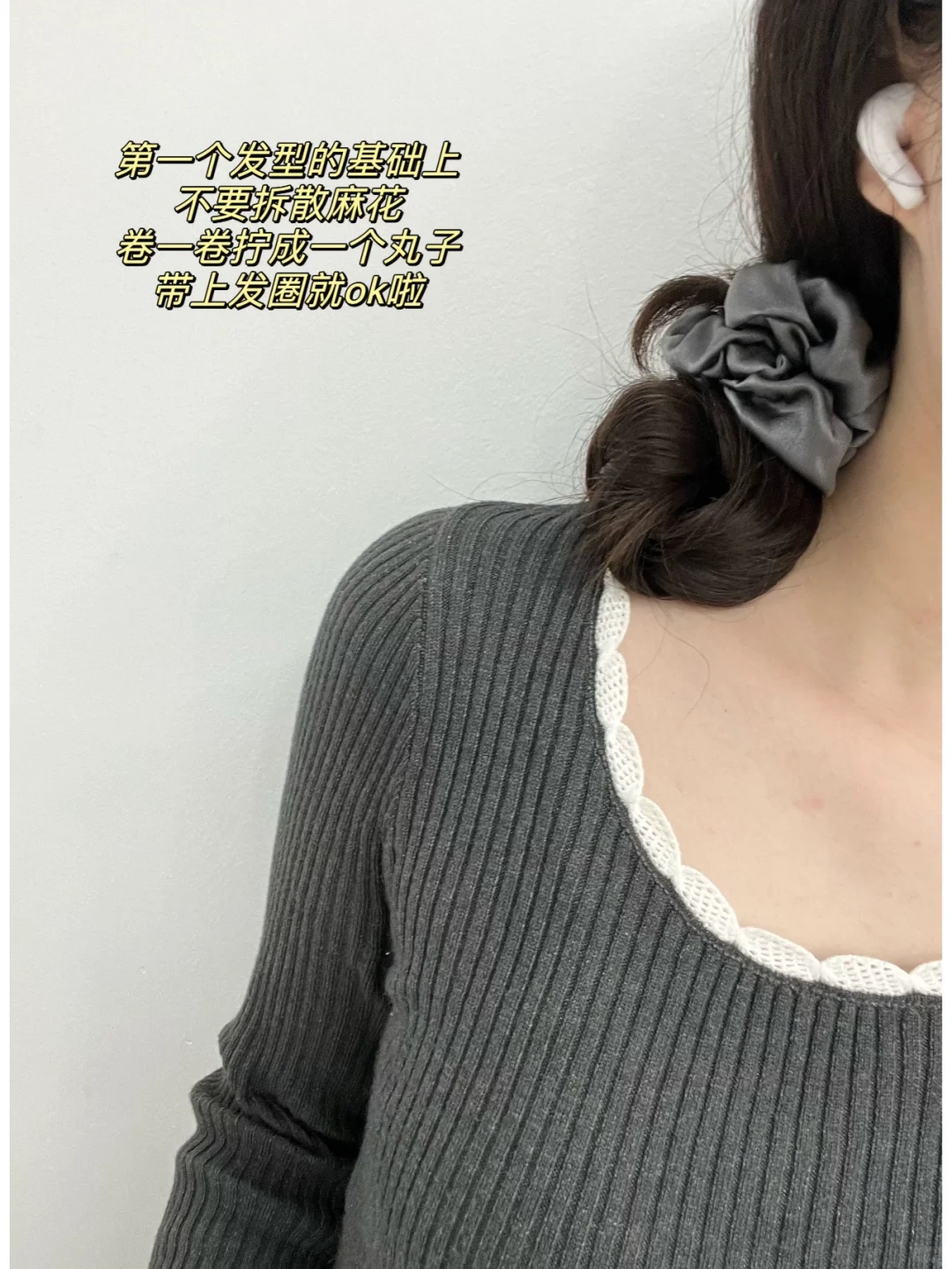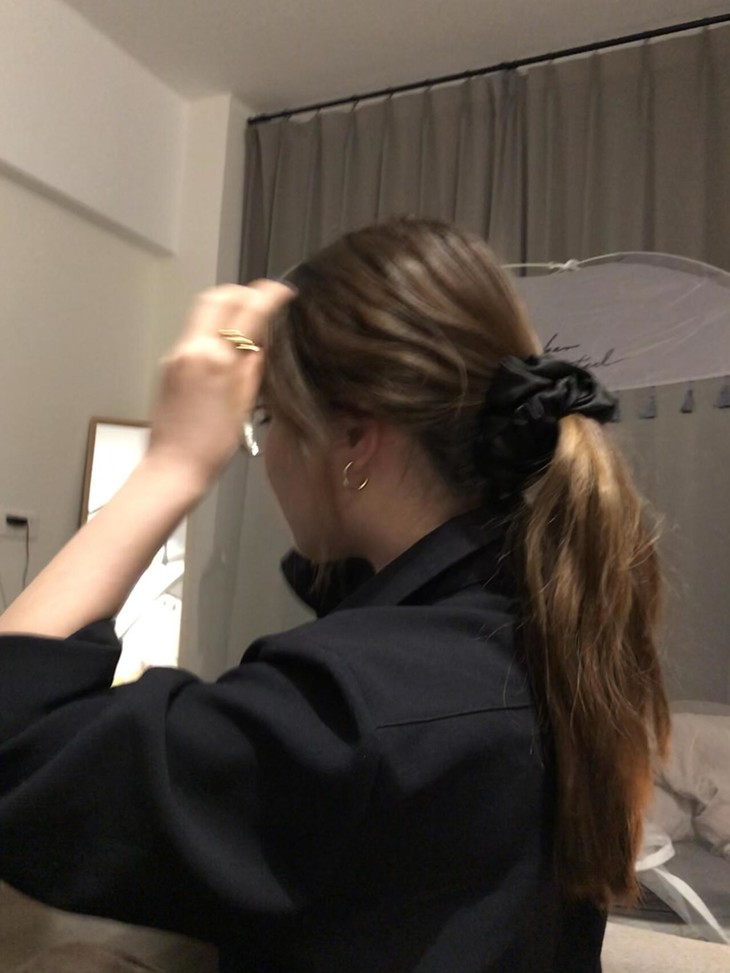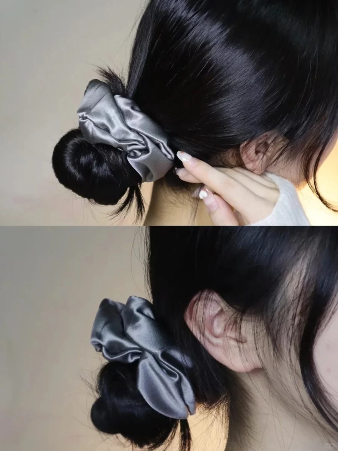 早八懒人30s发型一个真丝发圈就搞定啦!!韩系温柔风不就随便拿捏咯