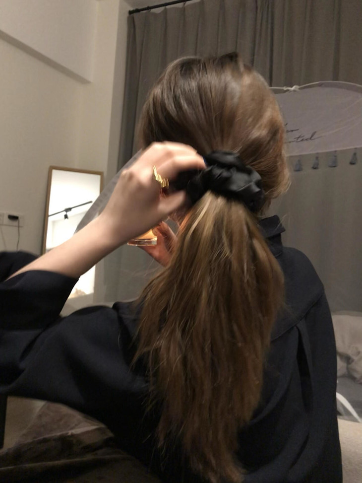 像抱枕般包裹着发丝,可以扎2圈,不容易褶皱