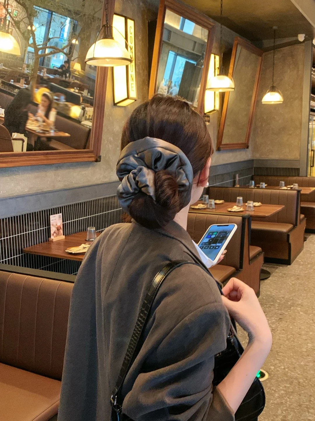 在看请和我的老公结婚的时候,就发现女主也有好几个真丝大肠发圈造型随意的低丸子头,简单不费力的优雅 不同颜色搭配不同的造型