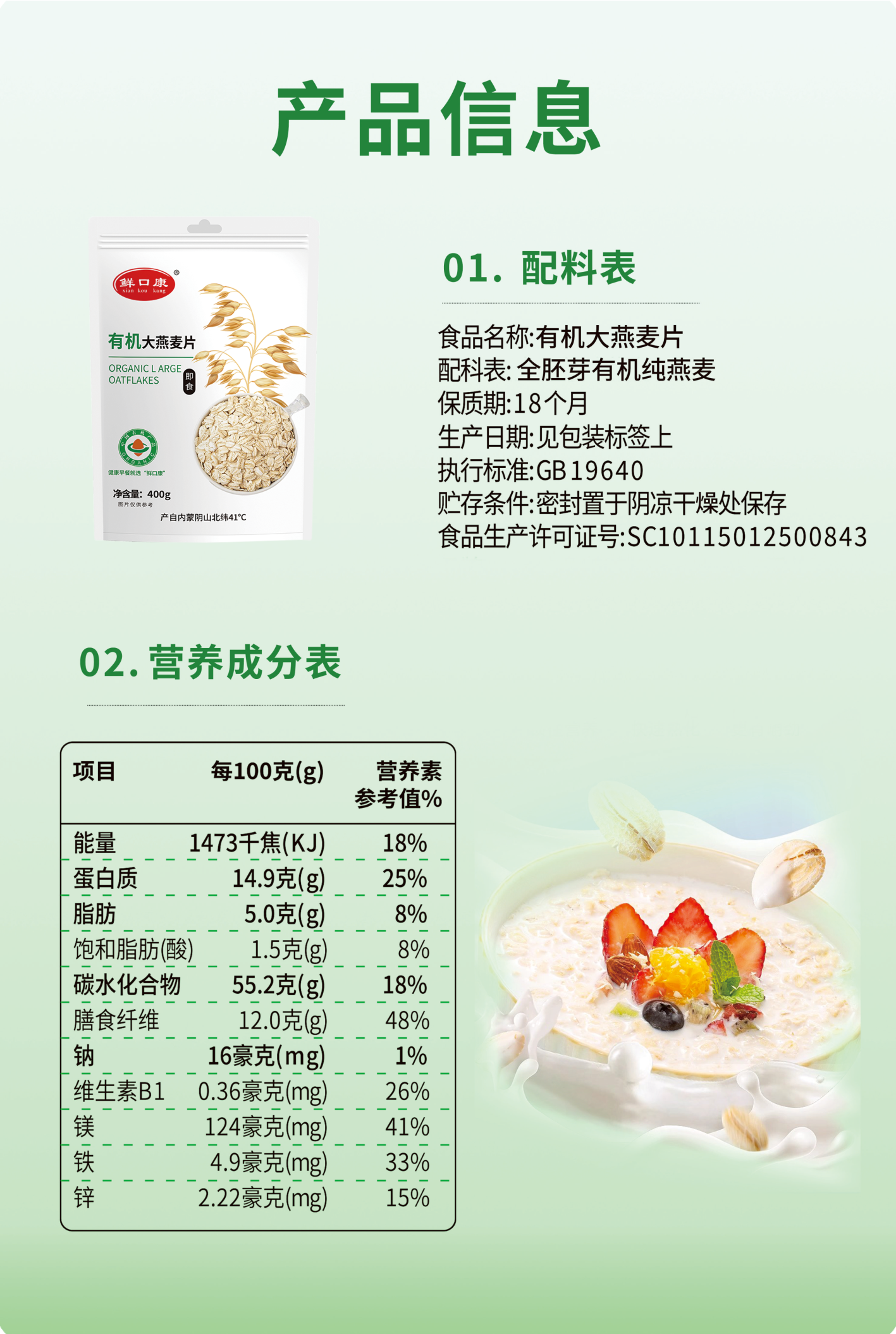 【小米专属】鲜口康天然全胚芽双有机大燕麦片早餐即食冲泡400g*6包