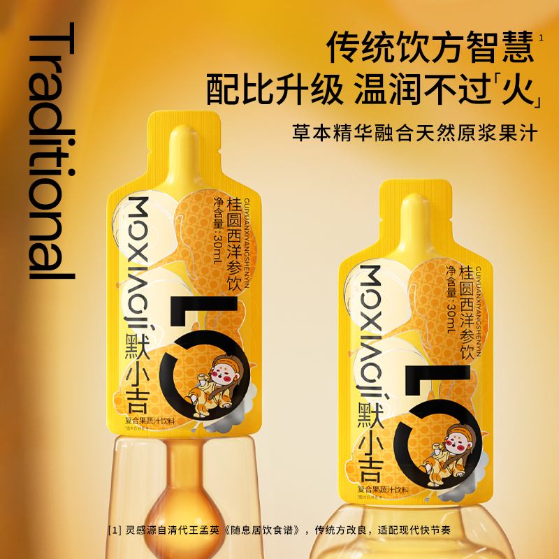 默小吉300ml、900ml、1800ml(30ml/袋)桂圆西洋参饮,玉灵原浆饮,玉灵膏配方复配桑葚原浆黑枸杞原浆苹果浓缩汁果蔬汁五指毛桃赤小豆原浆饮去氵桂圆西洋参饮玉灵饮组合
