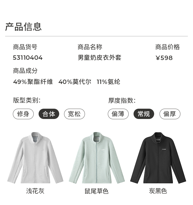moodytiger男童秋冬新针织立领拉链柔软透气舒适外套53110404