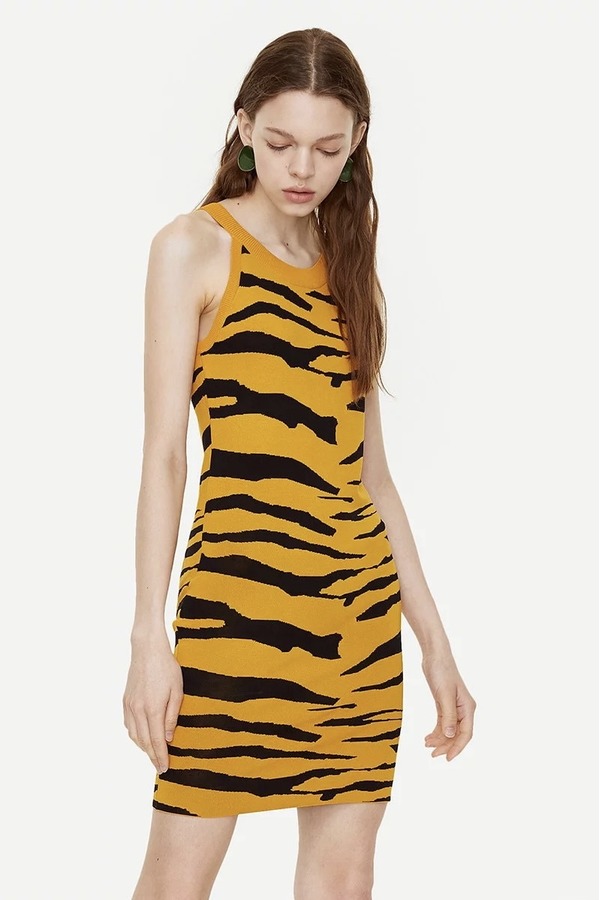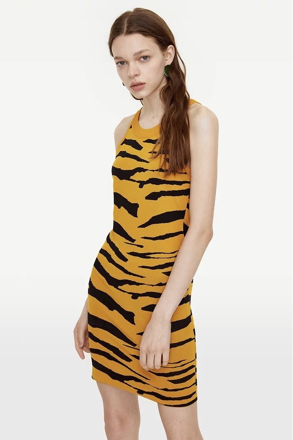 URBAN REVIVO 虎纹无袖针织连衣裙 15728