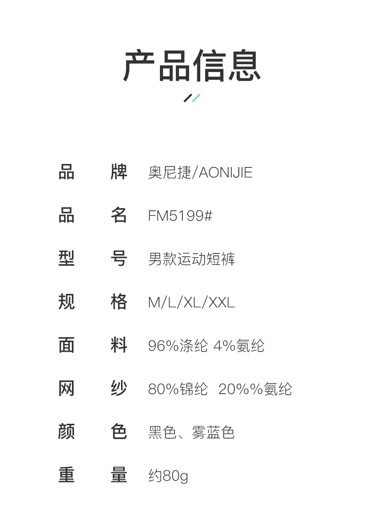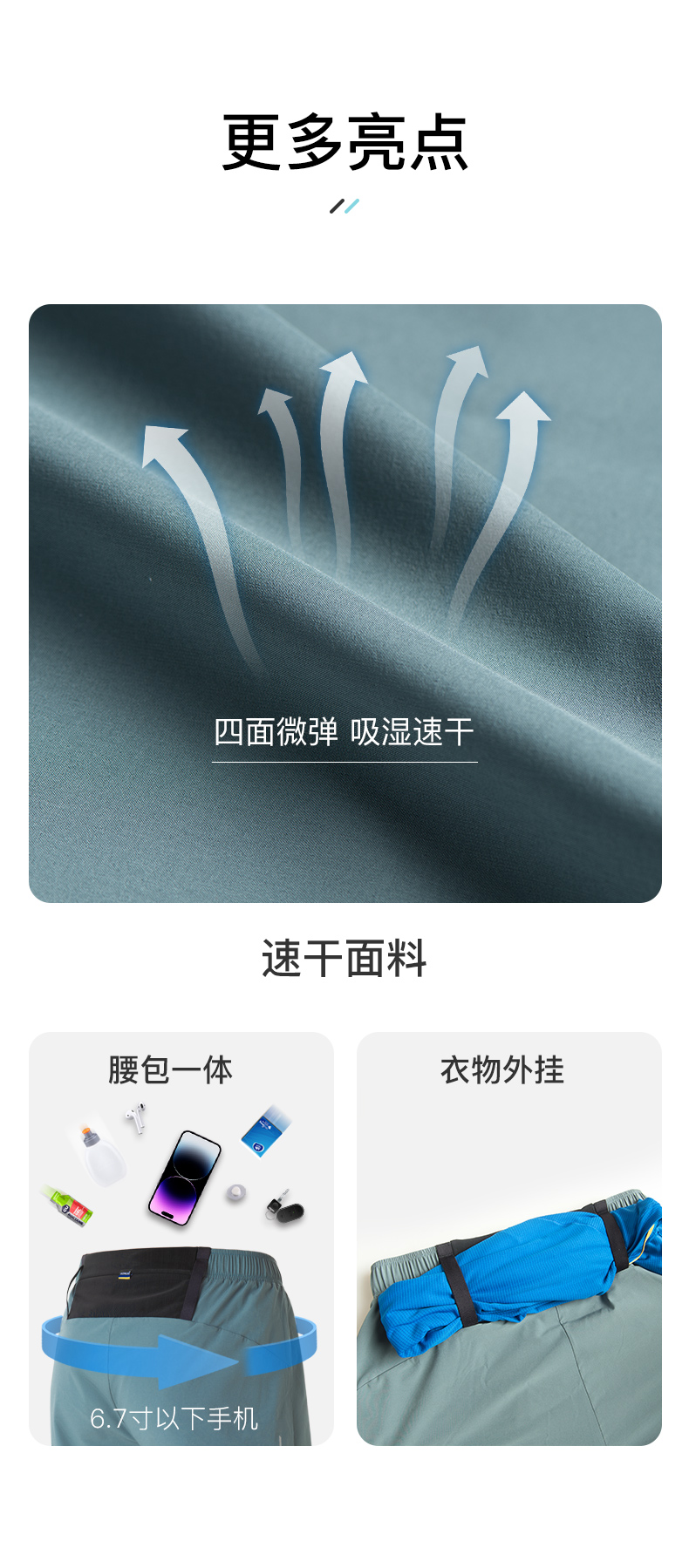 奥尼捷男士运动短裤透气速干可放手机运动短裤马拉松训练跑步球类运动短裤FM5199