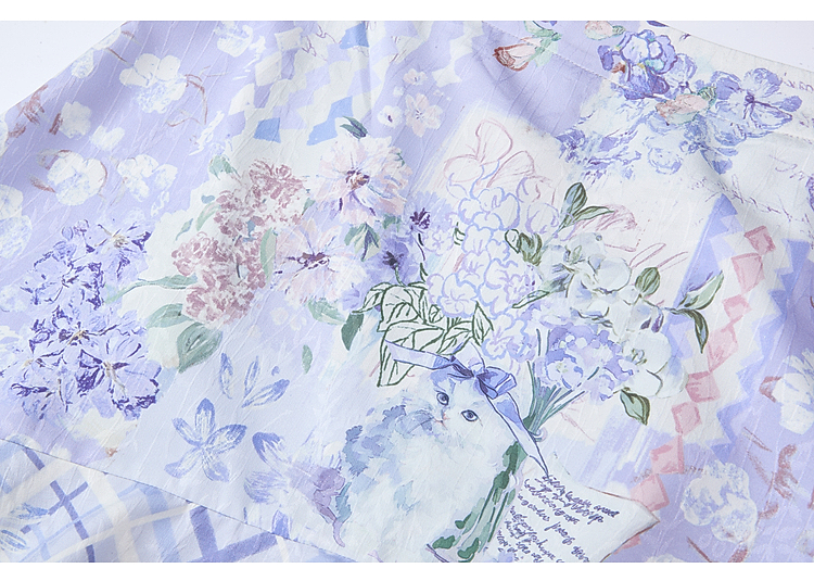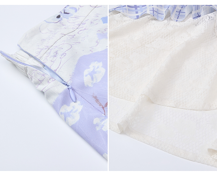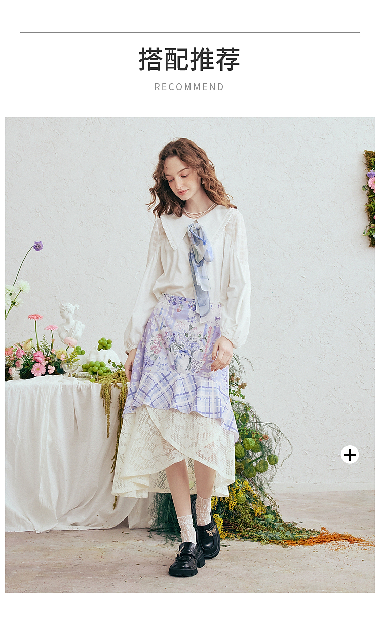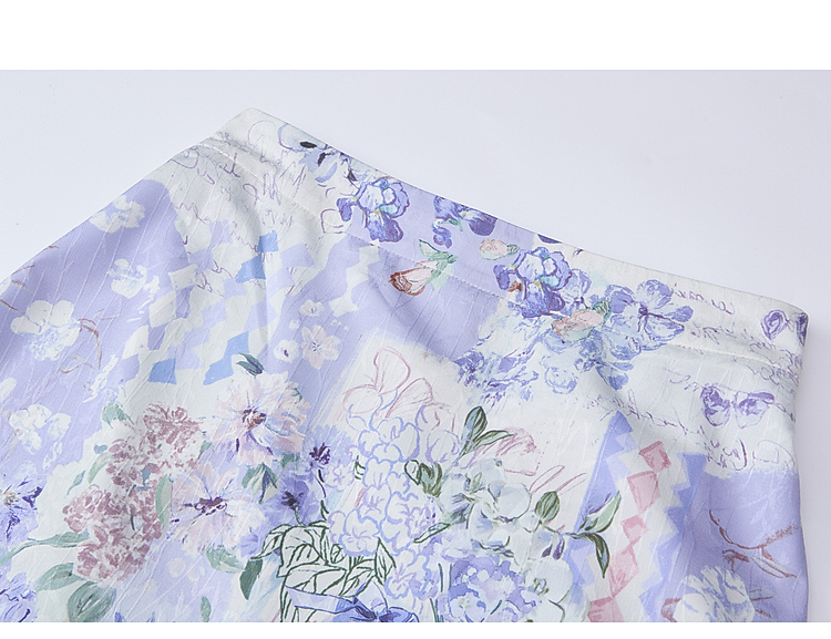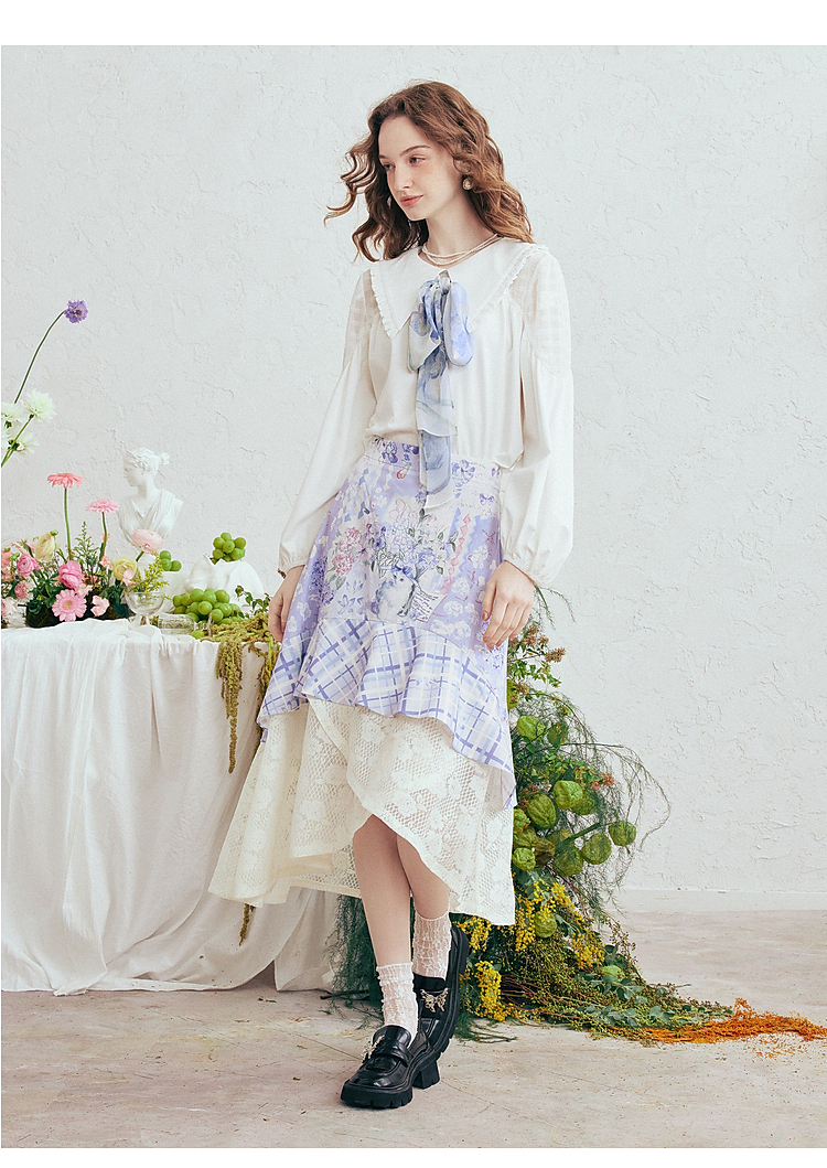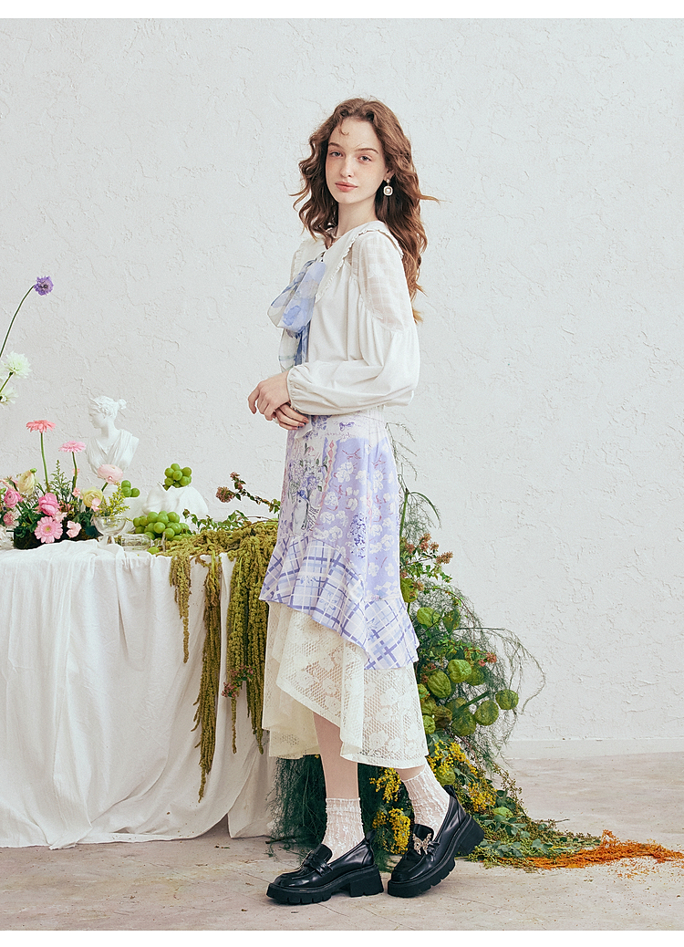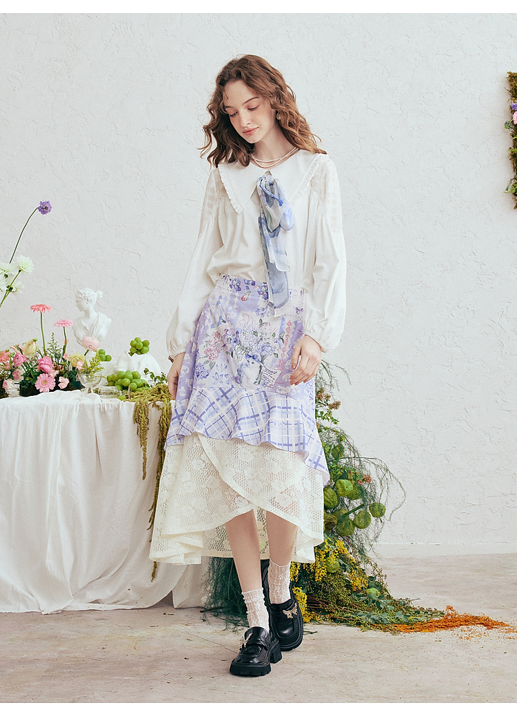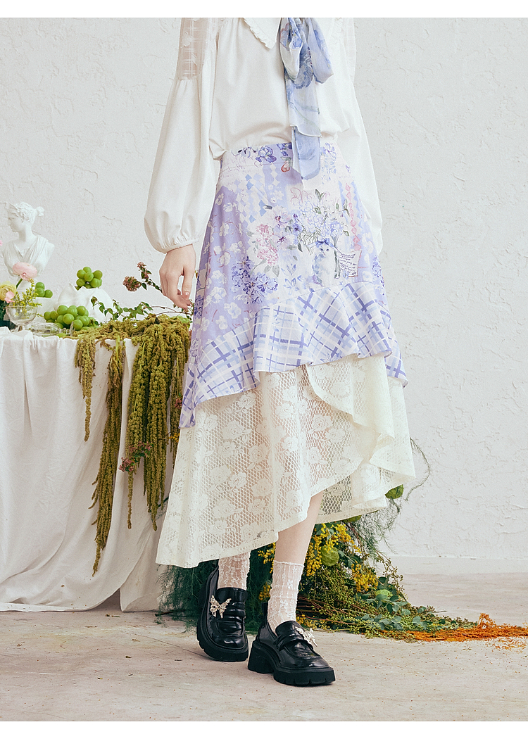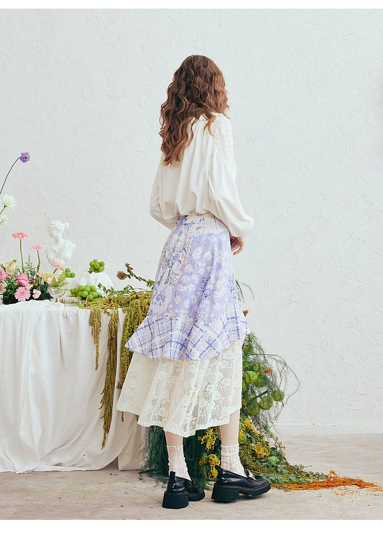 两三事梵高文艺 缱绻心事 2026春季新款蕾丝拼接印花不规则半身裙