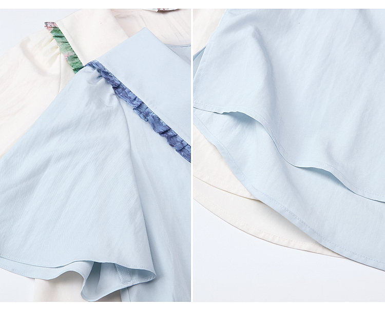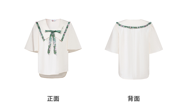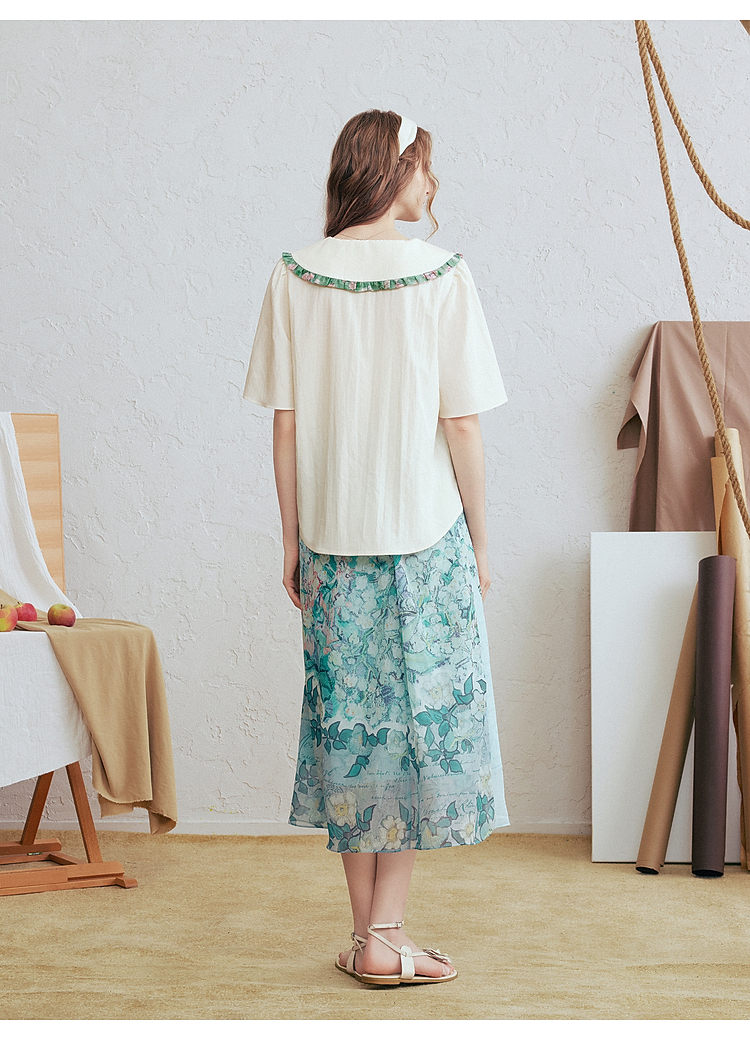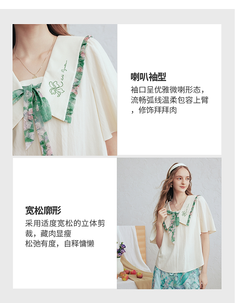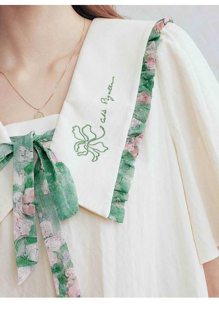 两三事梵高文艺月光废墟2026春新款印花荷叶边刺绣翻领绑带衬衫女