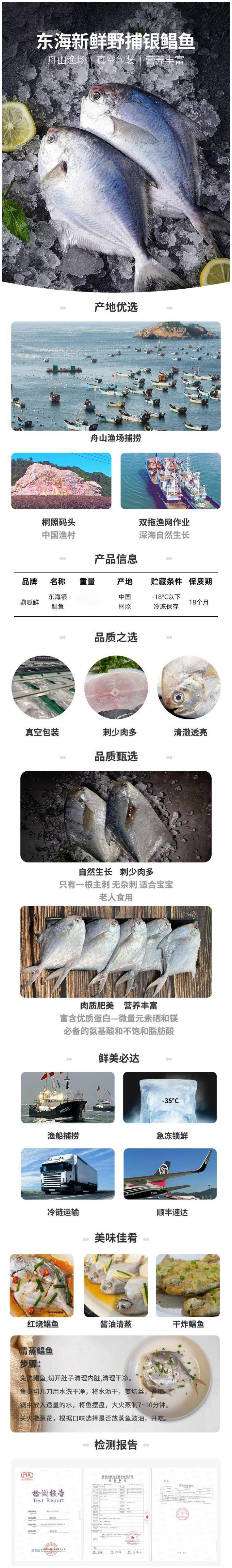 【浙江舟山海捕】东海新鲜速冻银鲳鱼4条装(未净膛,每条200g~250g,总重量不低于850克)