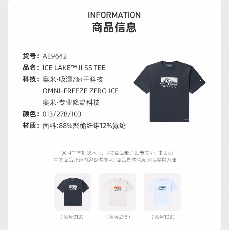 哥伦比亚男式冰感速干短袖T恤AE9642 364