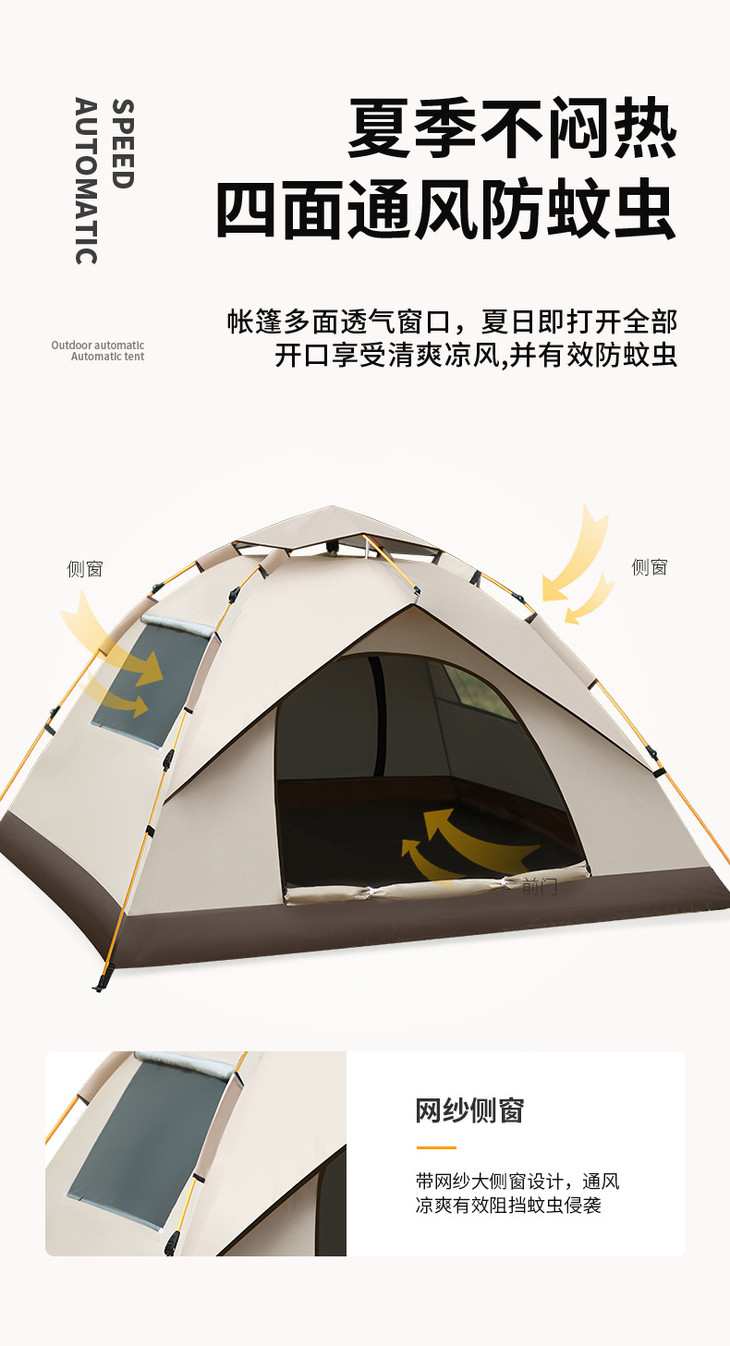 【1秒速开!全自动露营帐篷】轻便出行,赠送原装收纳袋,野餐户外野营全自动防水防晒防蚊蚊帐便携帐篷