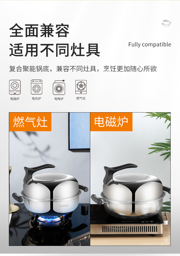 Debo德铂-比特堡汤蒸锅3.5L 一锅多用不挑灶具(配可立组合盖、蒸片)