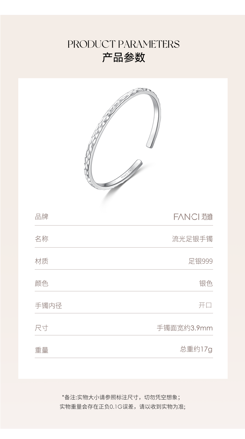 【流光足银手镯】Fanci范琦999足银开口手饰 礼物送妈妈 下单赠精美礼盒+顺丰速运+运费险