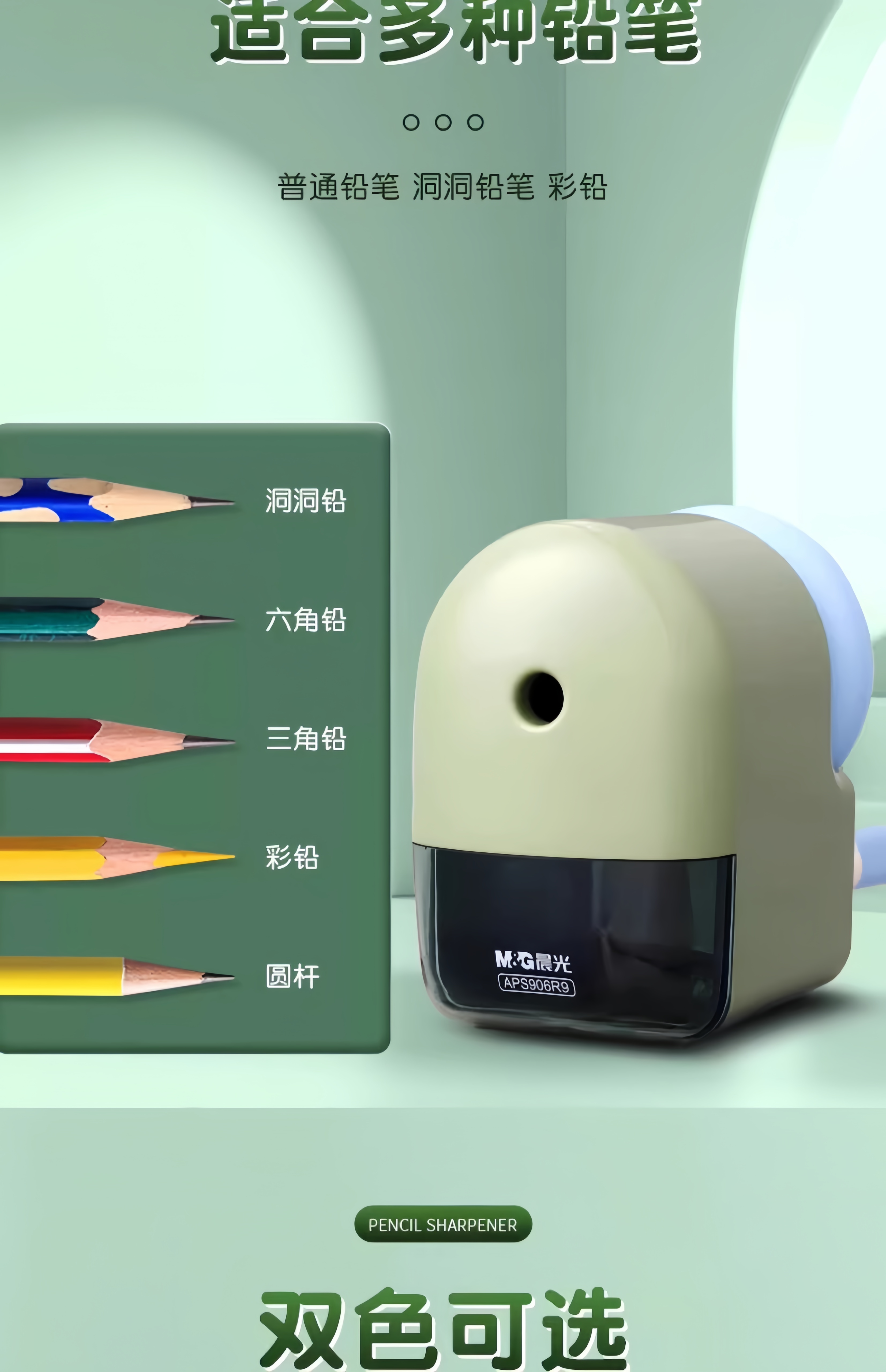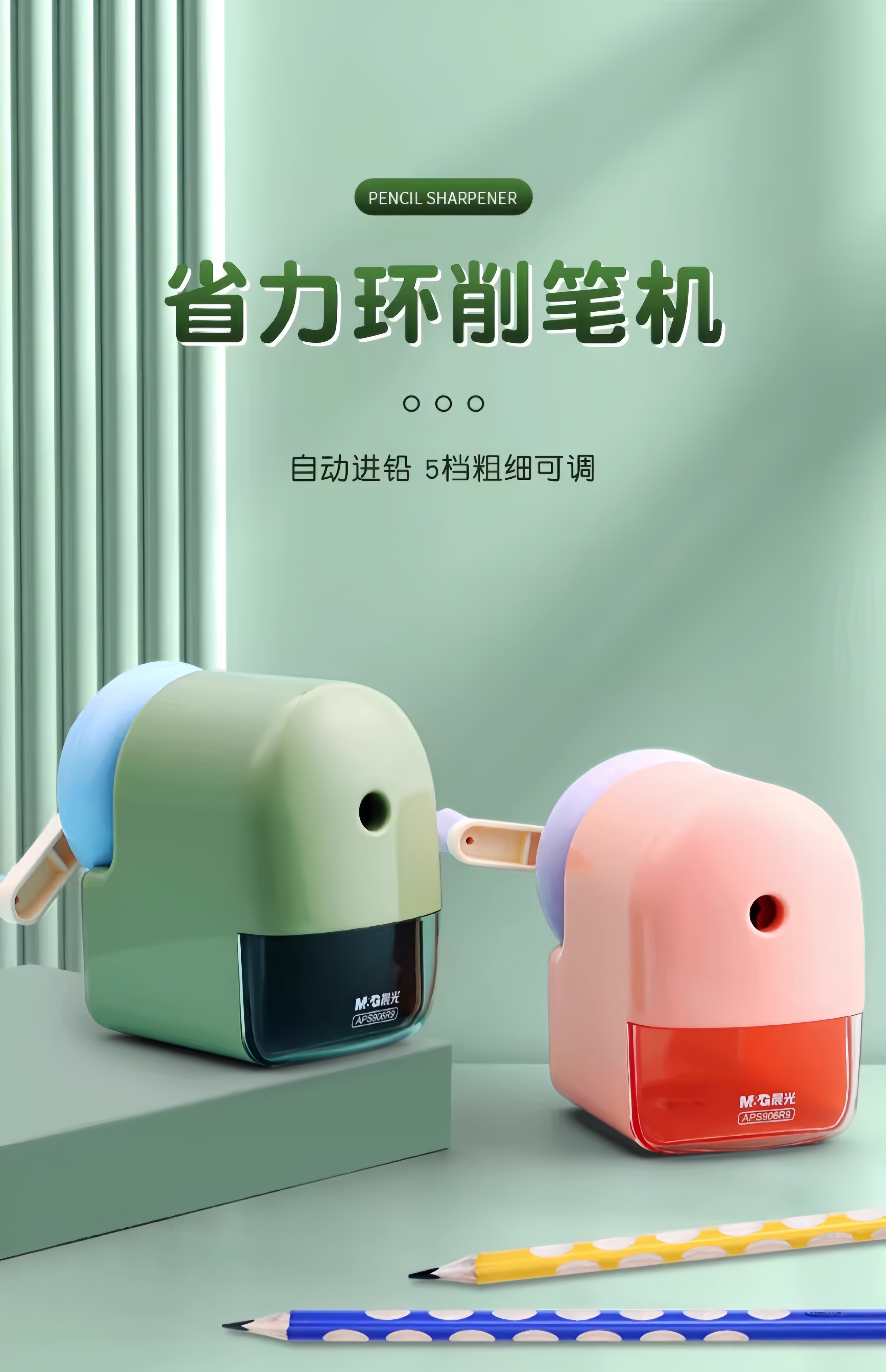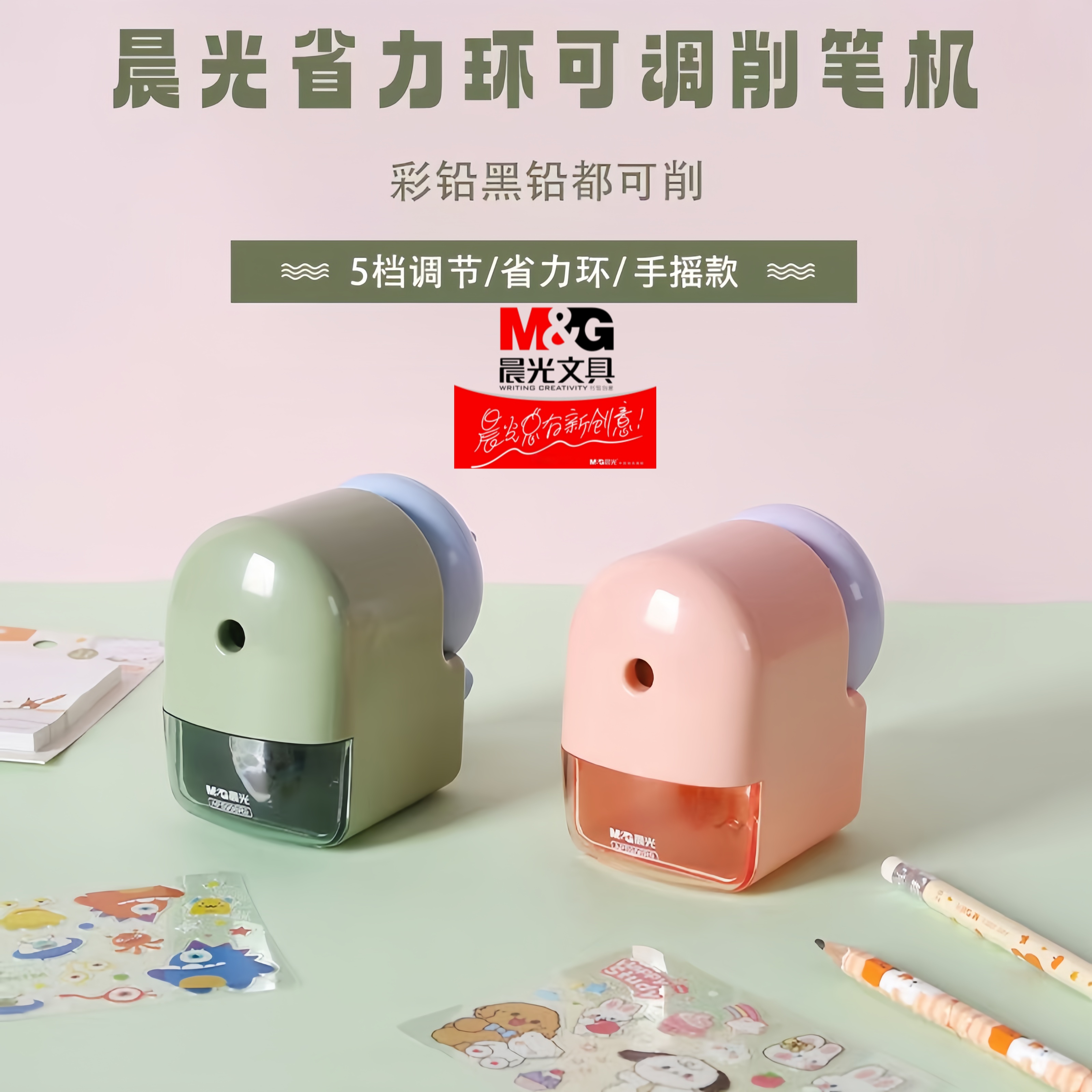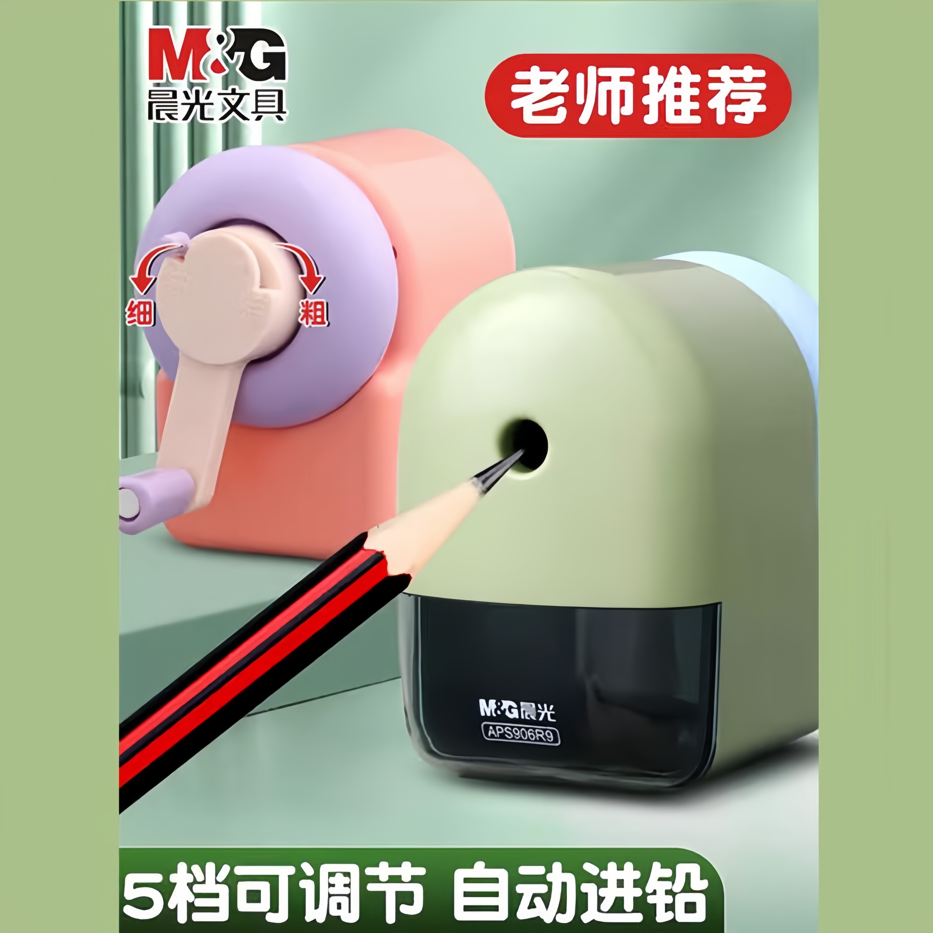 APS906R9晨光卷笔刀小学生儿童专用小型手摇5档可调美术生自动进铅(颜色随机)