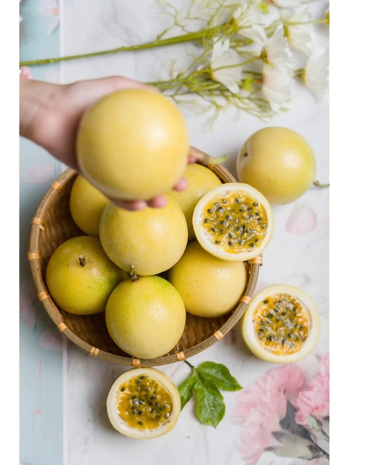 为了提高果实的品质、口感,冒着成熟容易落果的风险,等待果实树上成熟度达8-9层才采摘,收到客户的订单当天采购傍晚发快递,把最优质的钦蜜9号黄金百香果给顾客品尝。