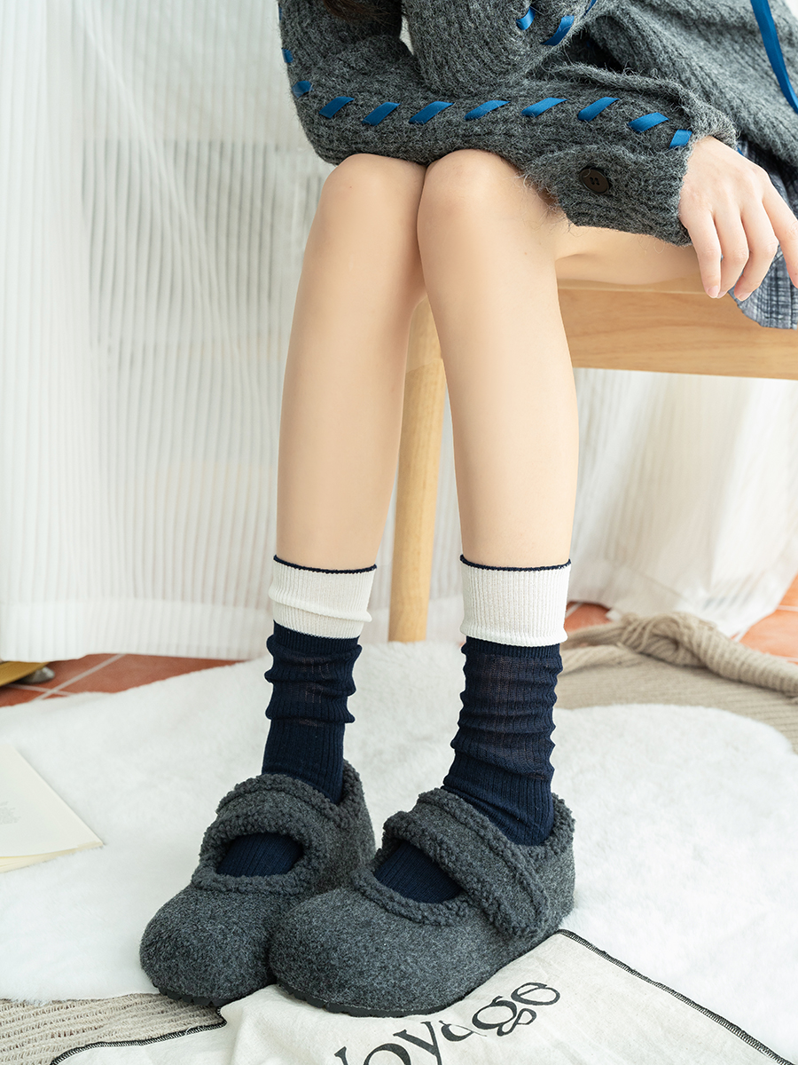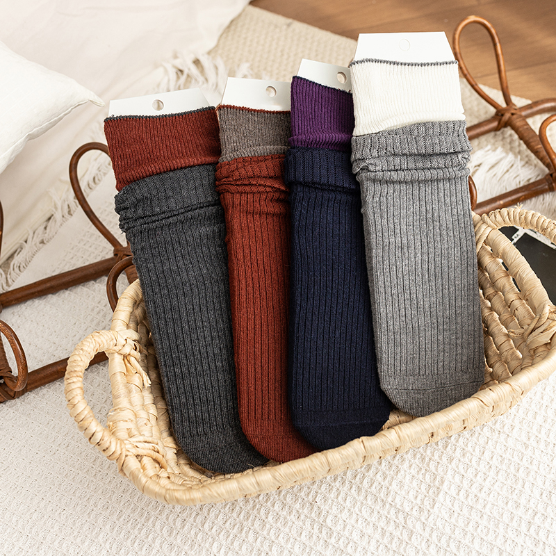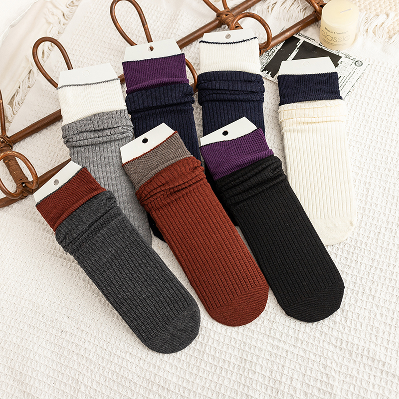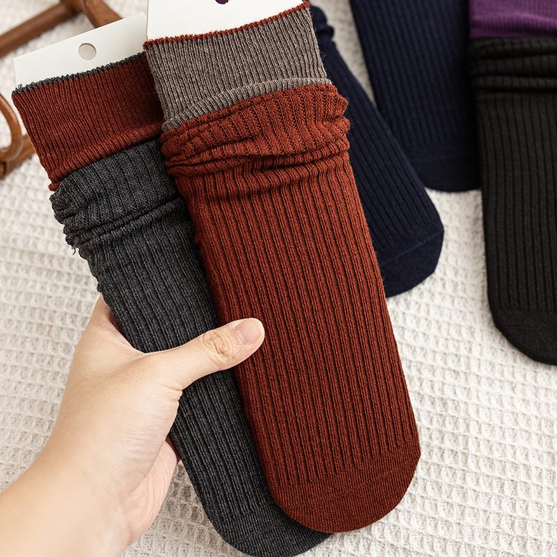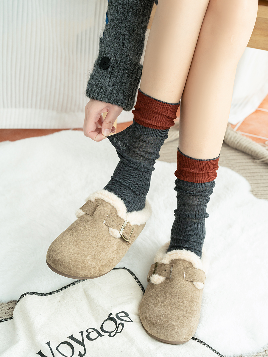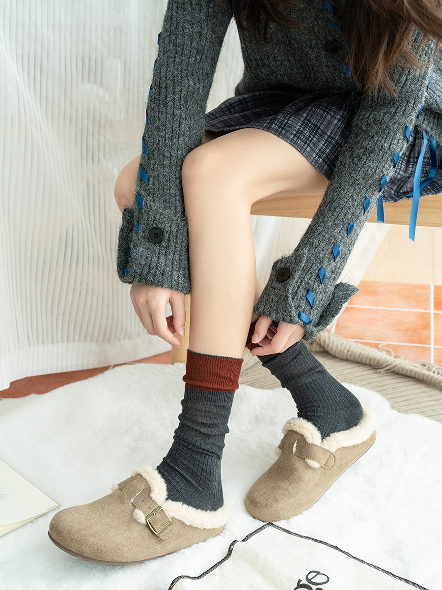 【2双装】女士拼色双针法式风堆堆袜抗起球羊毛堆堆袜【6双6折 2522813】