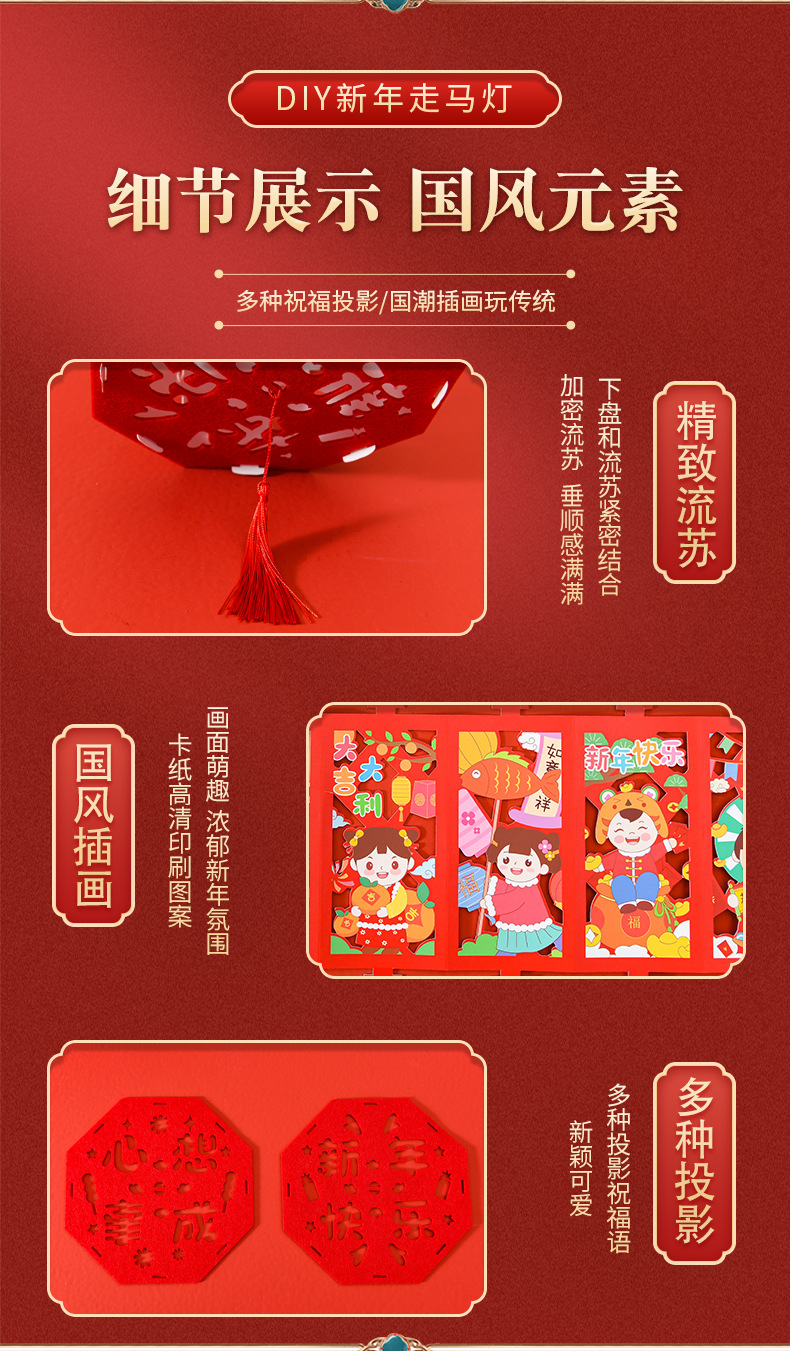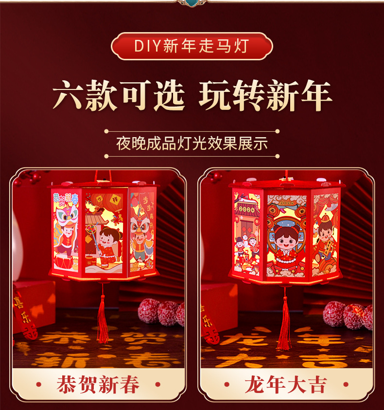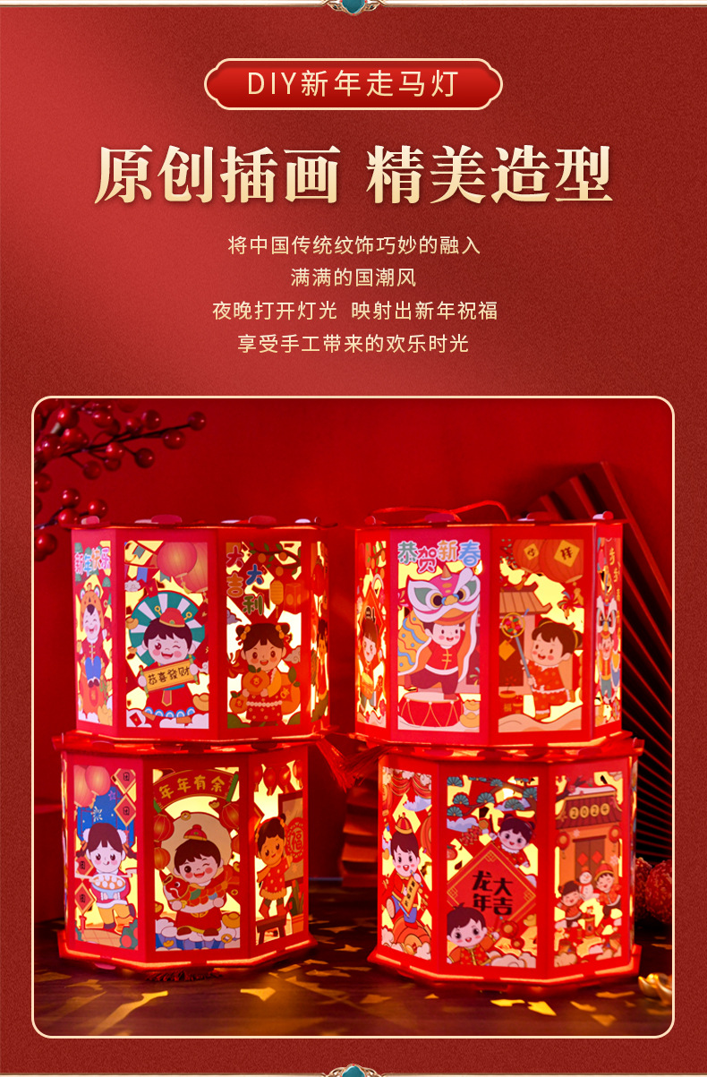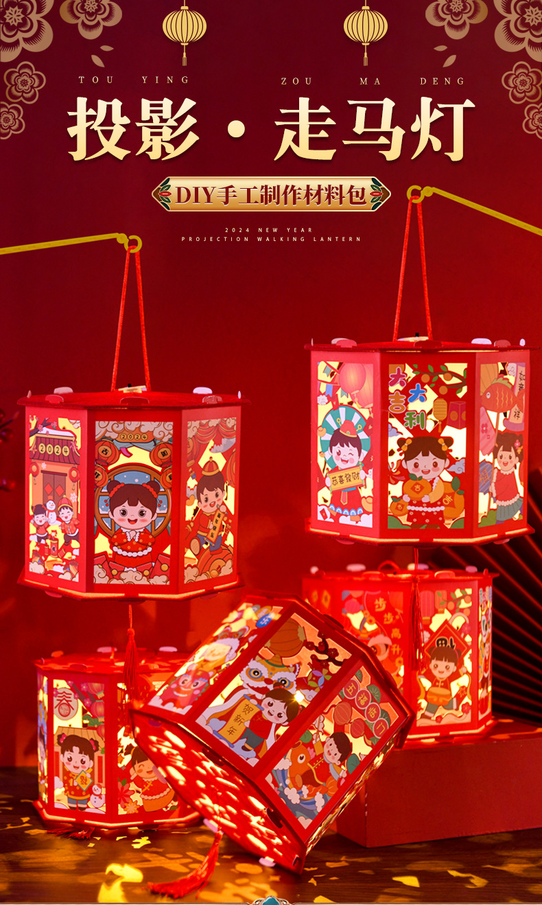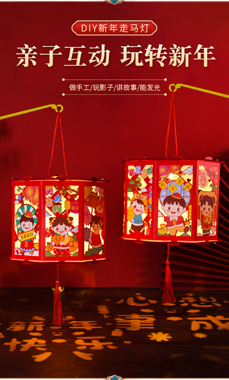 【国潮插画,镂空投影】龙年投影走马灯,元宵灯笼,是孩子们的童话梦。DIY灯笼材料包,带给你亲子互动时光。快来感受春节的魔幻之美!