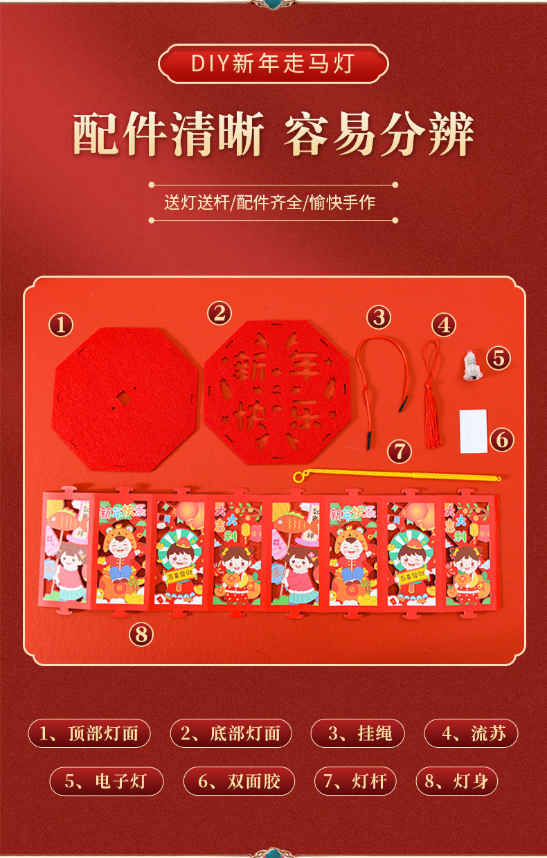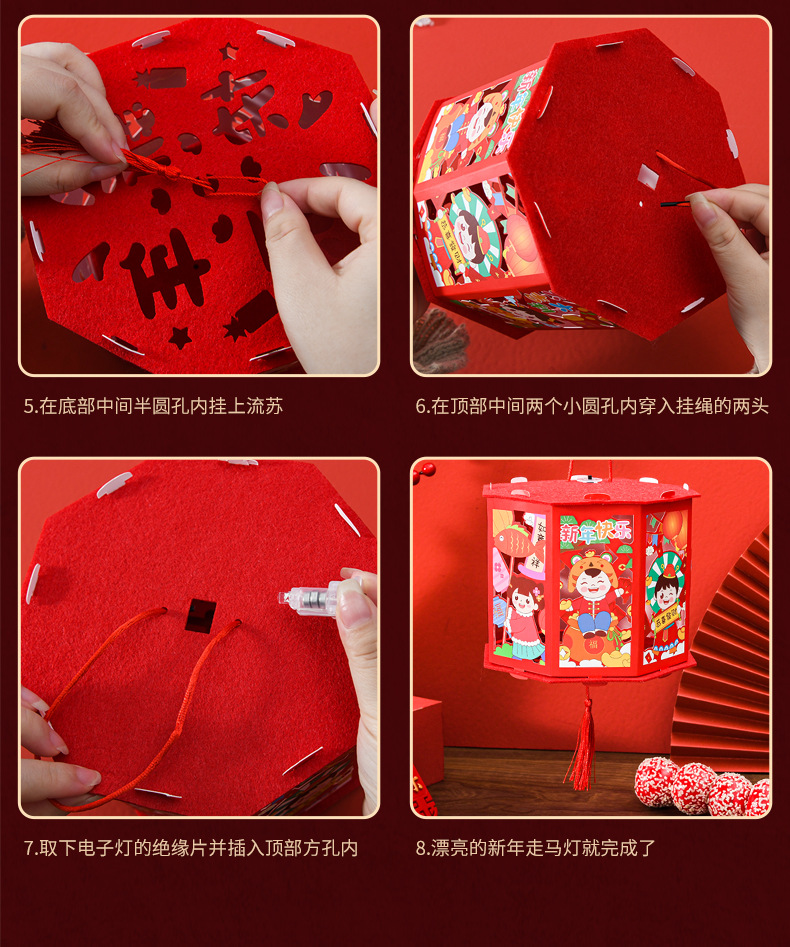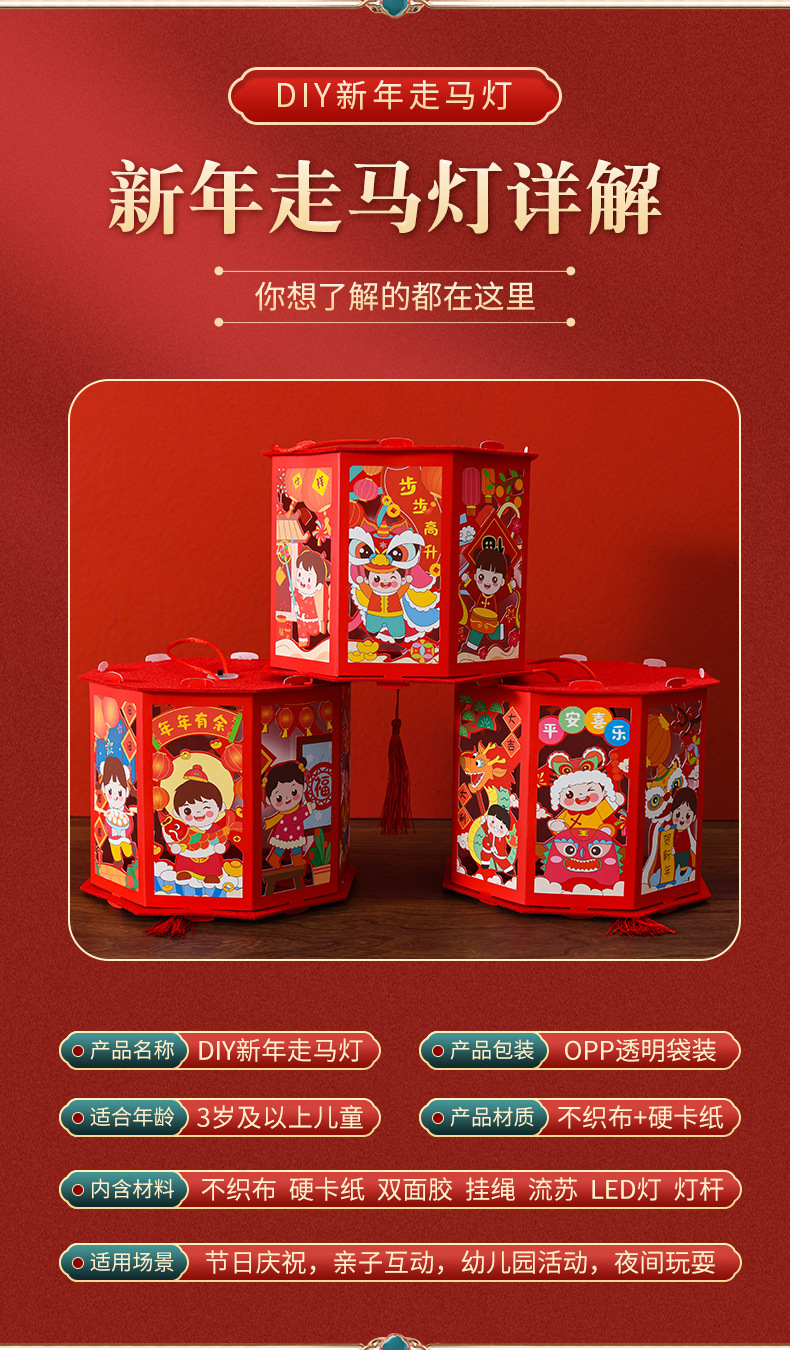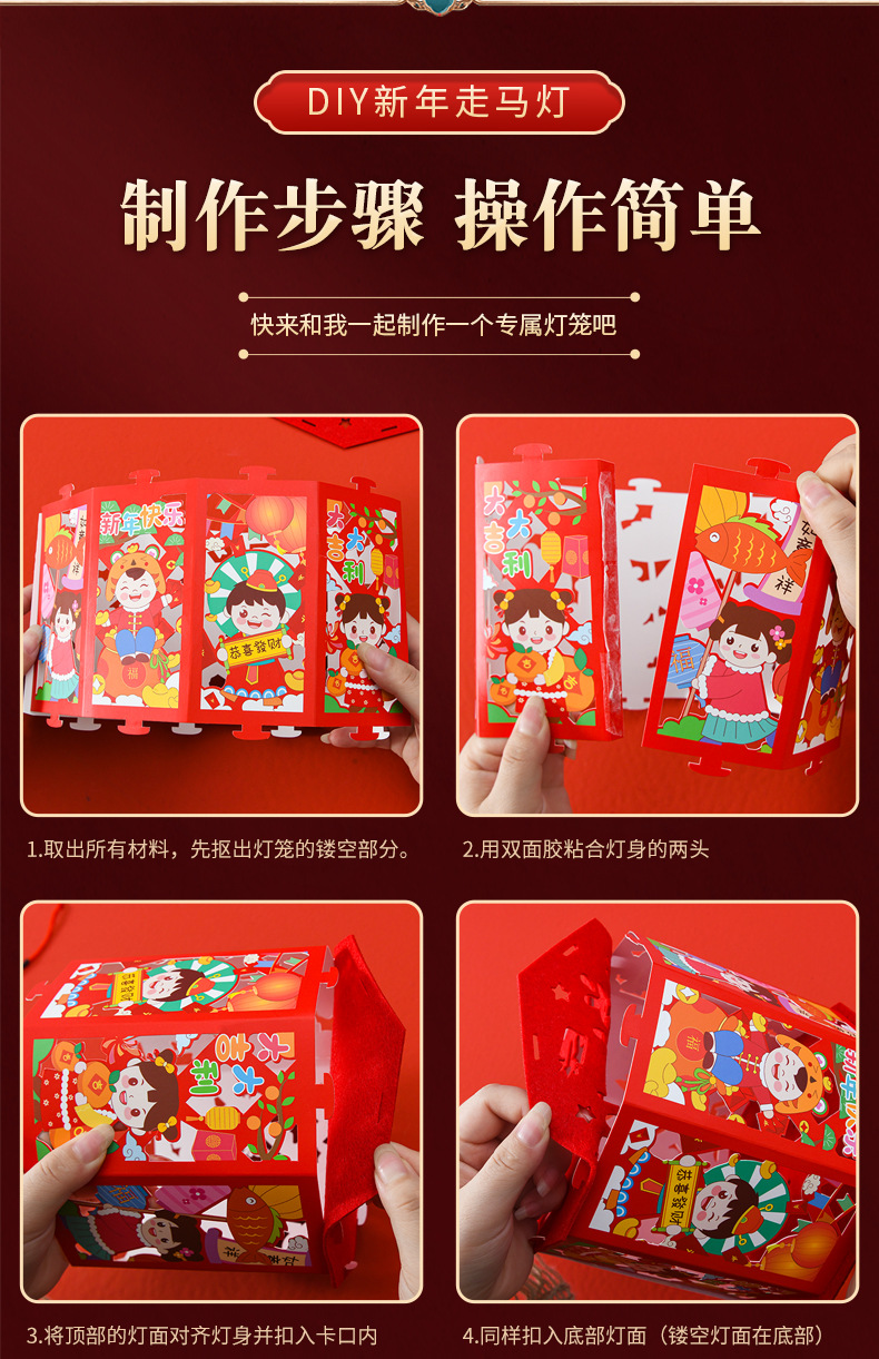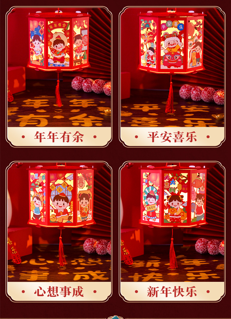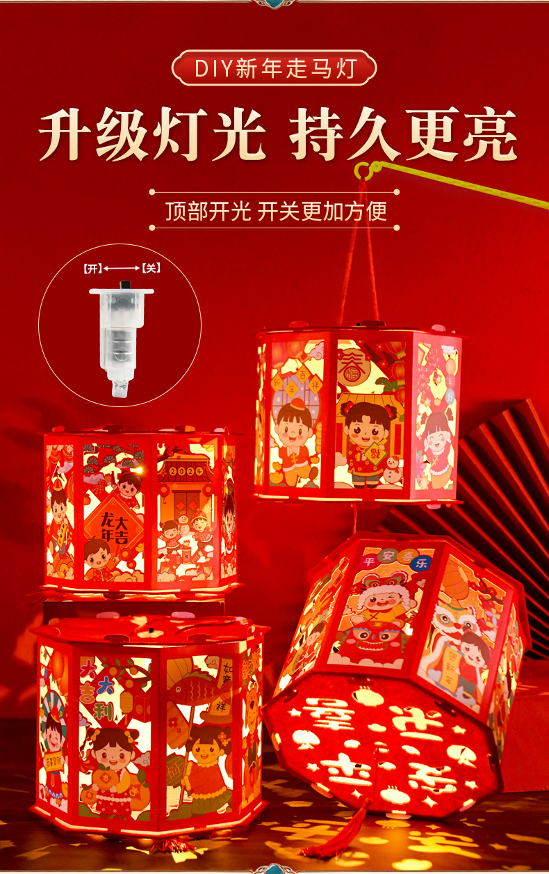 【国潮插画,镂空投影】龙年投影走马灯,元宵灯笼,是孩子们的童话梦。DIY灯笼材料包,带给你亲子互动时光。快来感受春节的魔幻之美!
