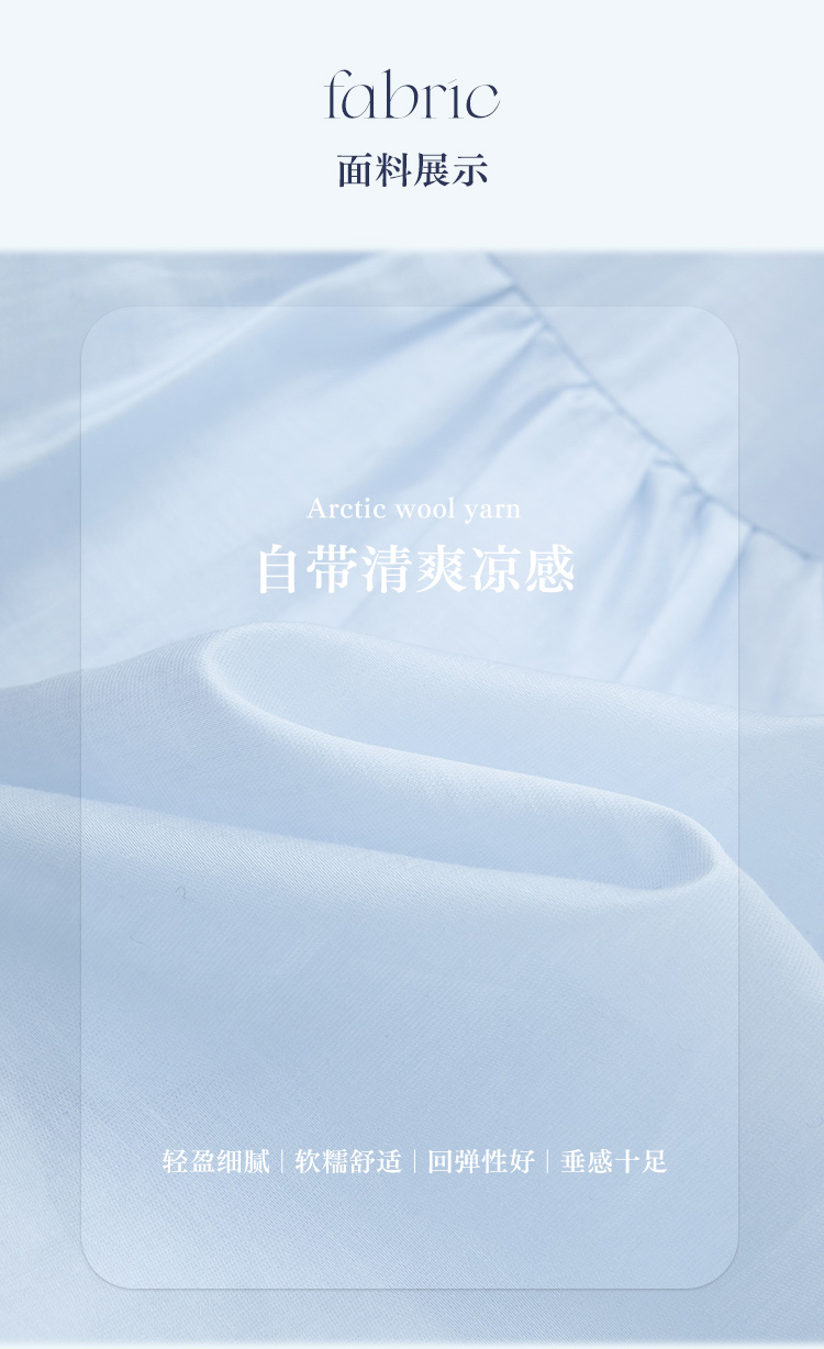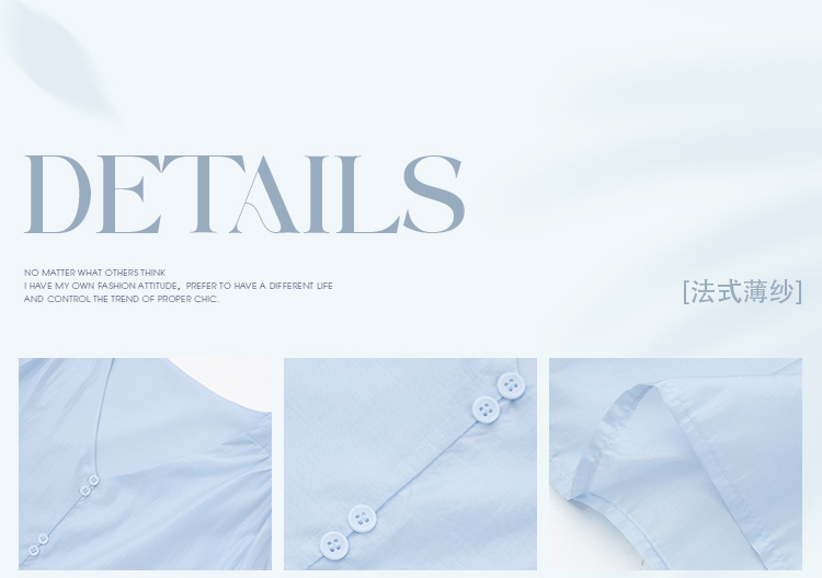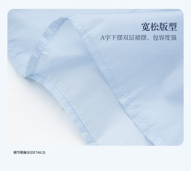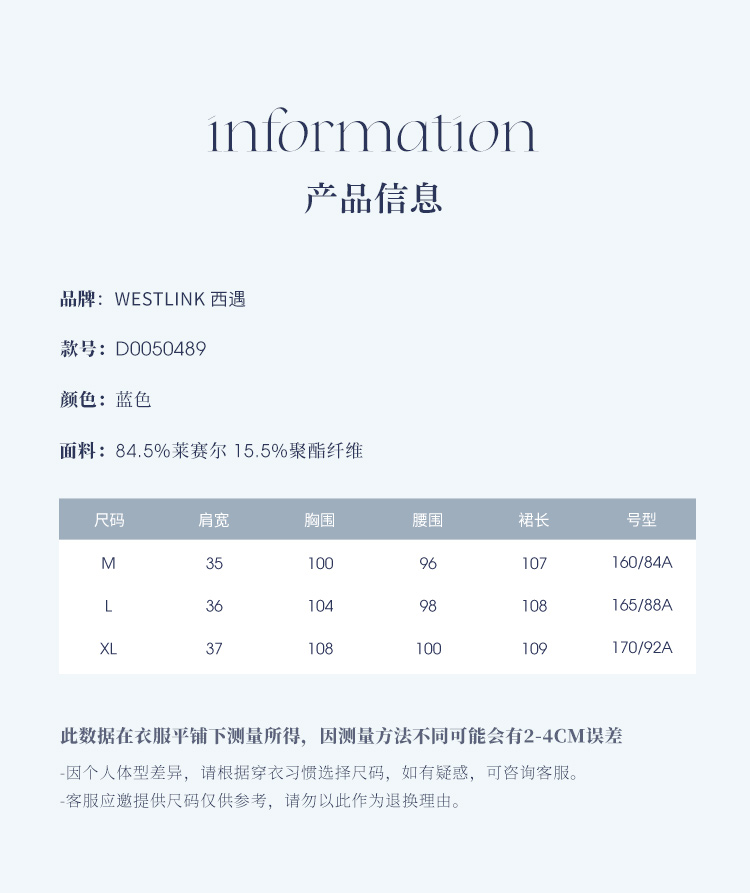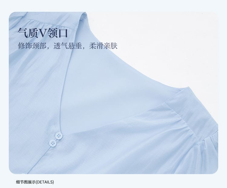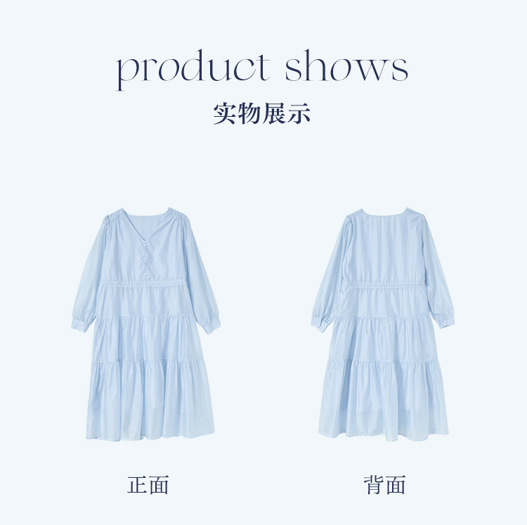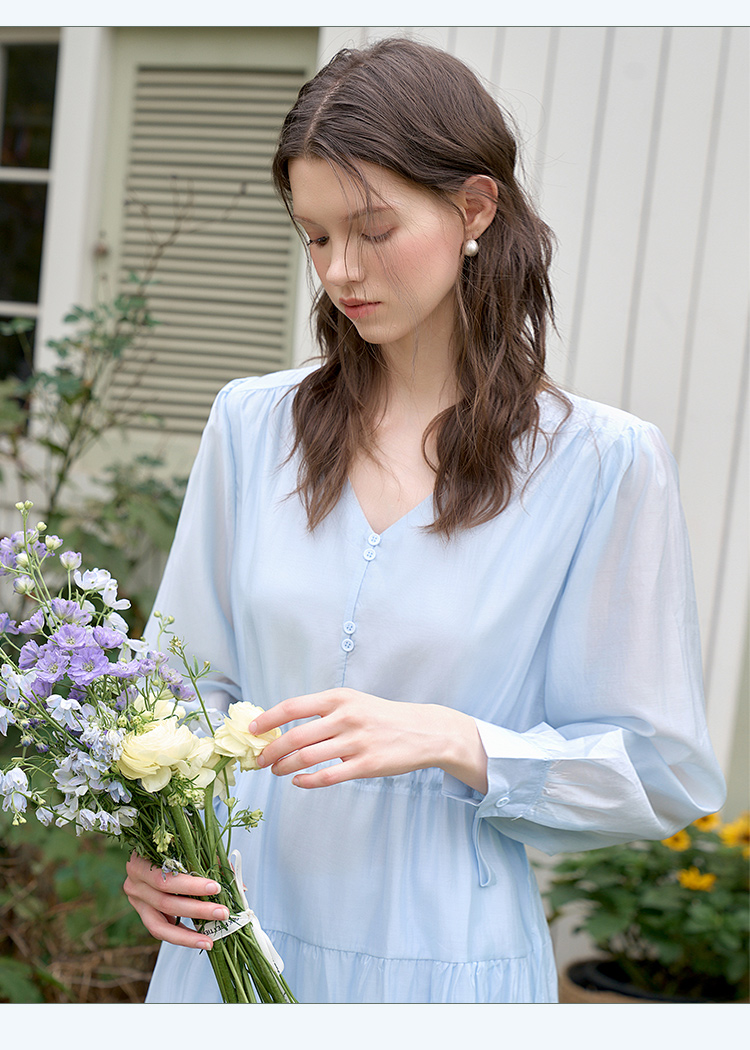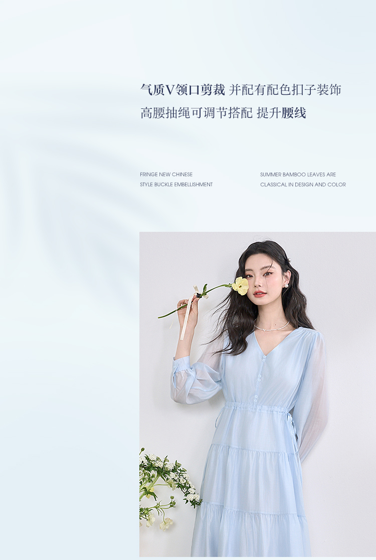 西遇法式薄纱长袖连衣裙女新款蓝色a字收腰v领长裙D0050489