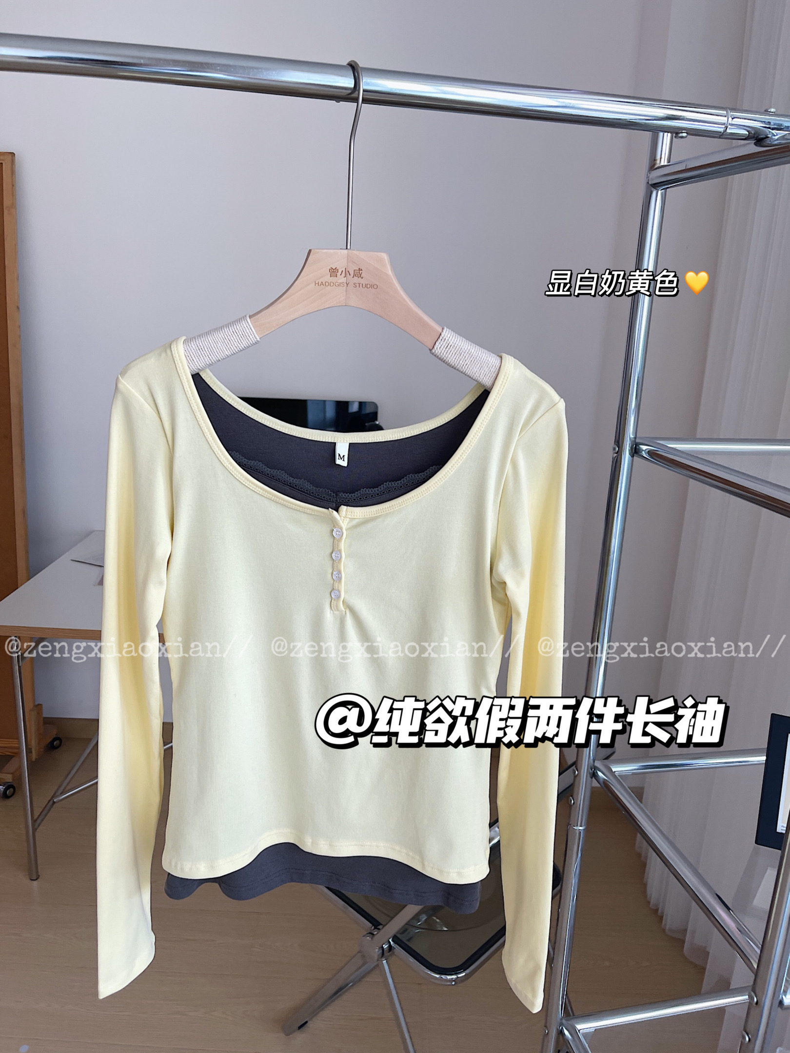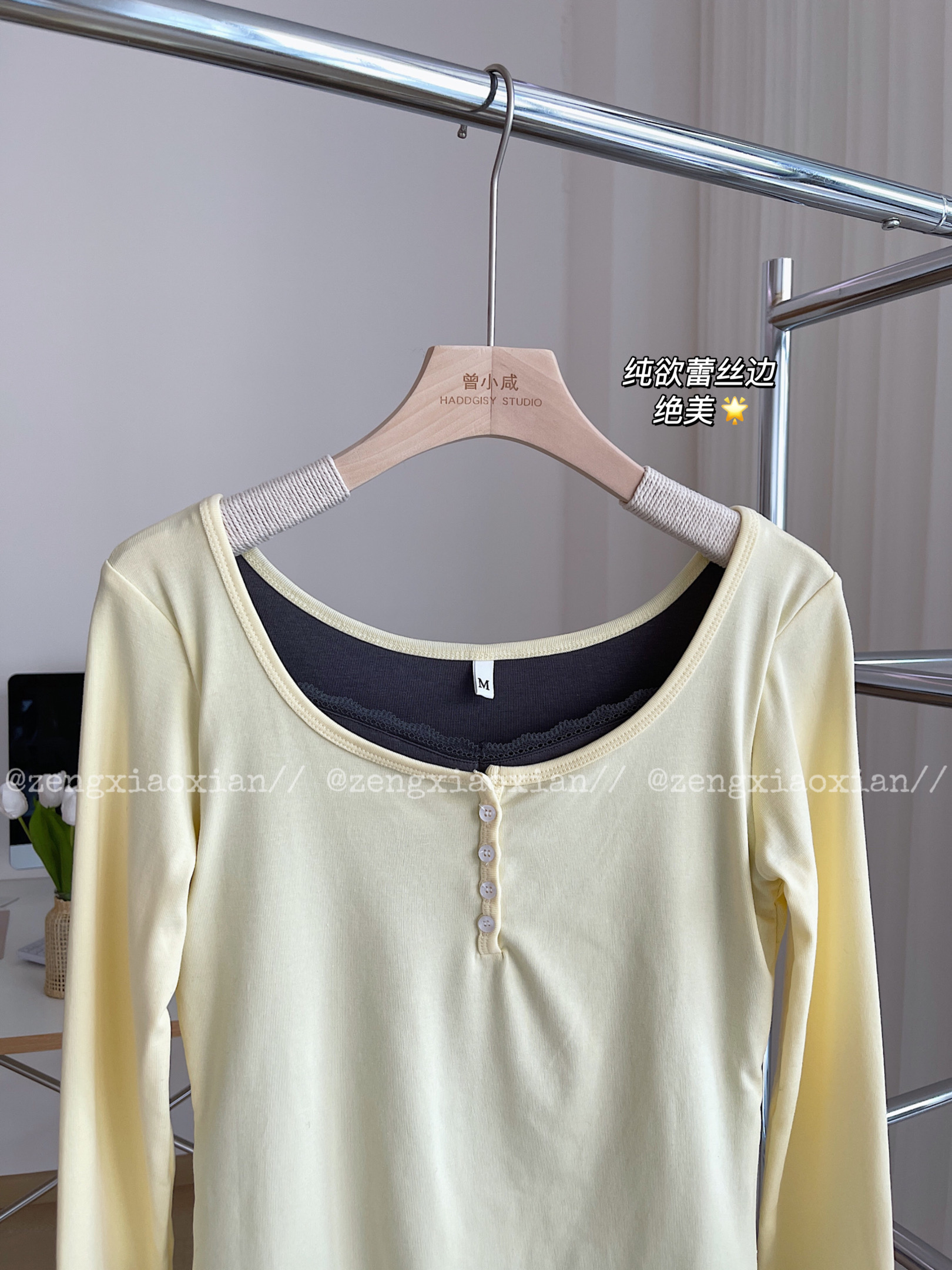 <曾小咸推荐> 纯欲蕾丝边假两件长袖