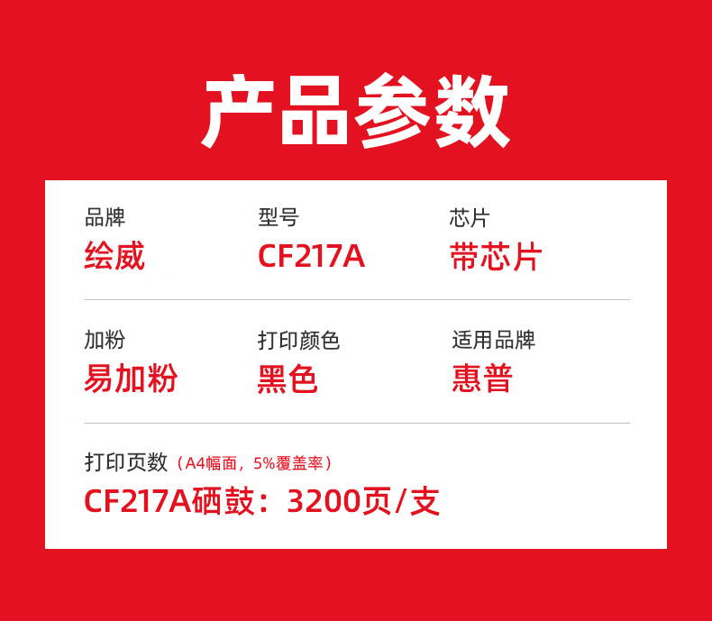 绘威CF217A 17A易加粉粉盒带芯片 适用惠普HP M102a M102w M130a M130fn M130fw M130nw硒鼓 墨盒 碳粉盒