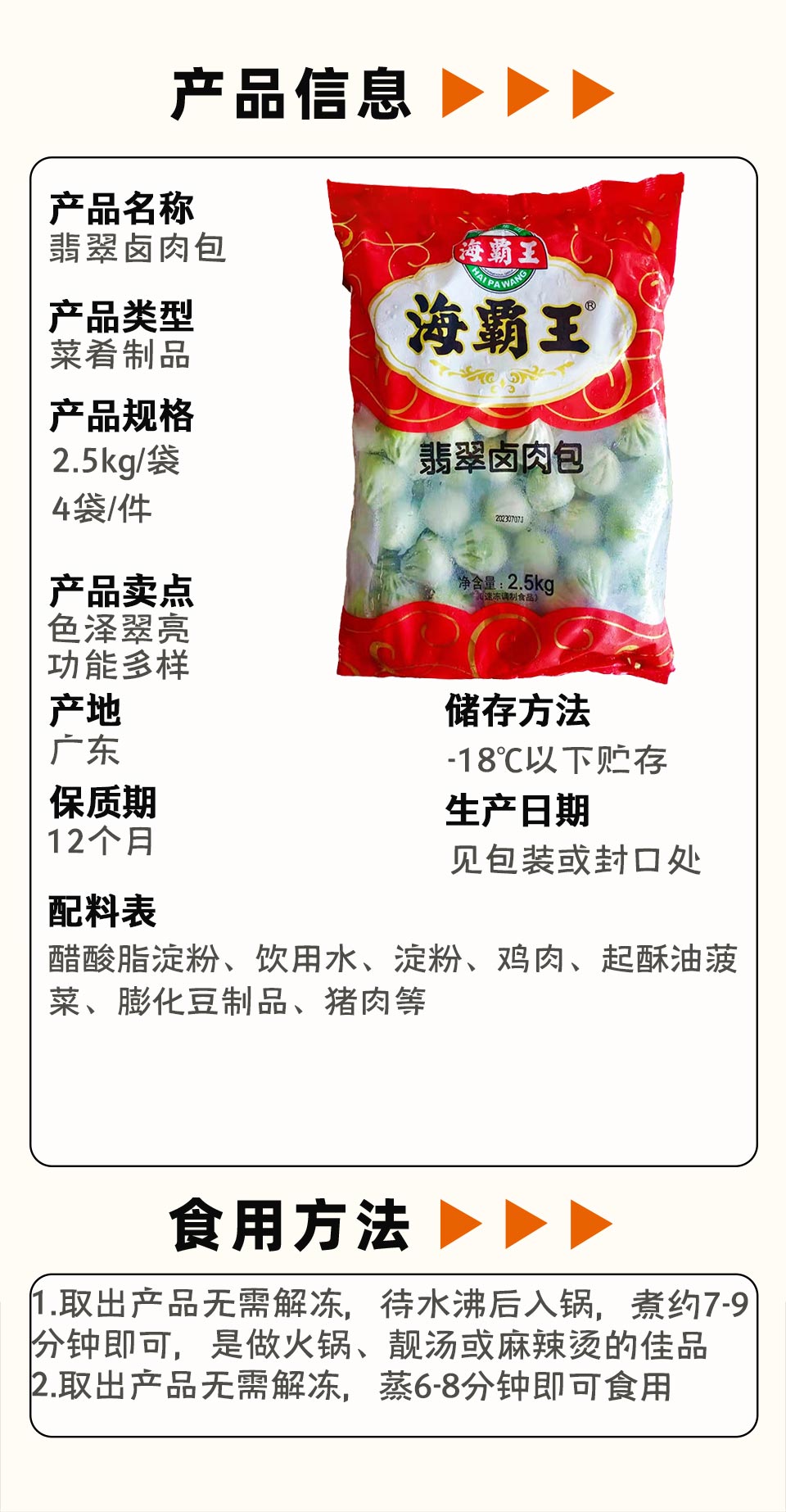 25A海霸王翡翠卤肉包2.5kg/袋 4袋/件