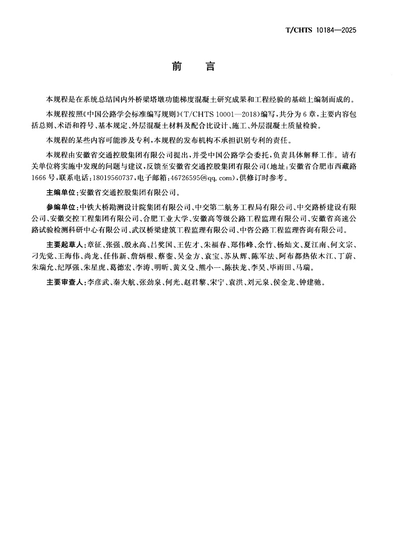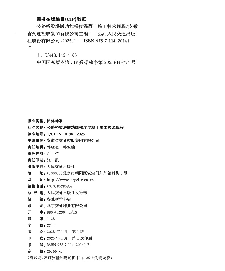 书名:公路桥梁塔墩功能梯度混凝土施工技术规程(T/CHTS 10184—2025)