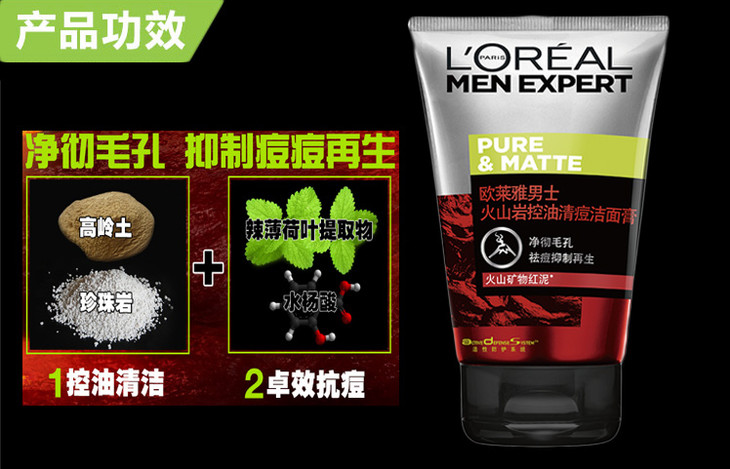 欧莱雅男士洁面膏洗面奶保湿控油祛痘100ml