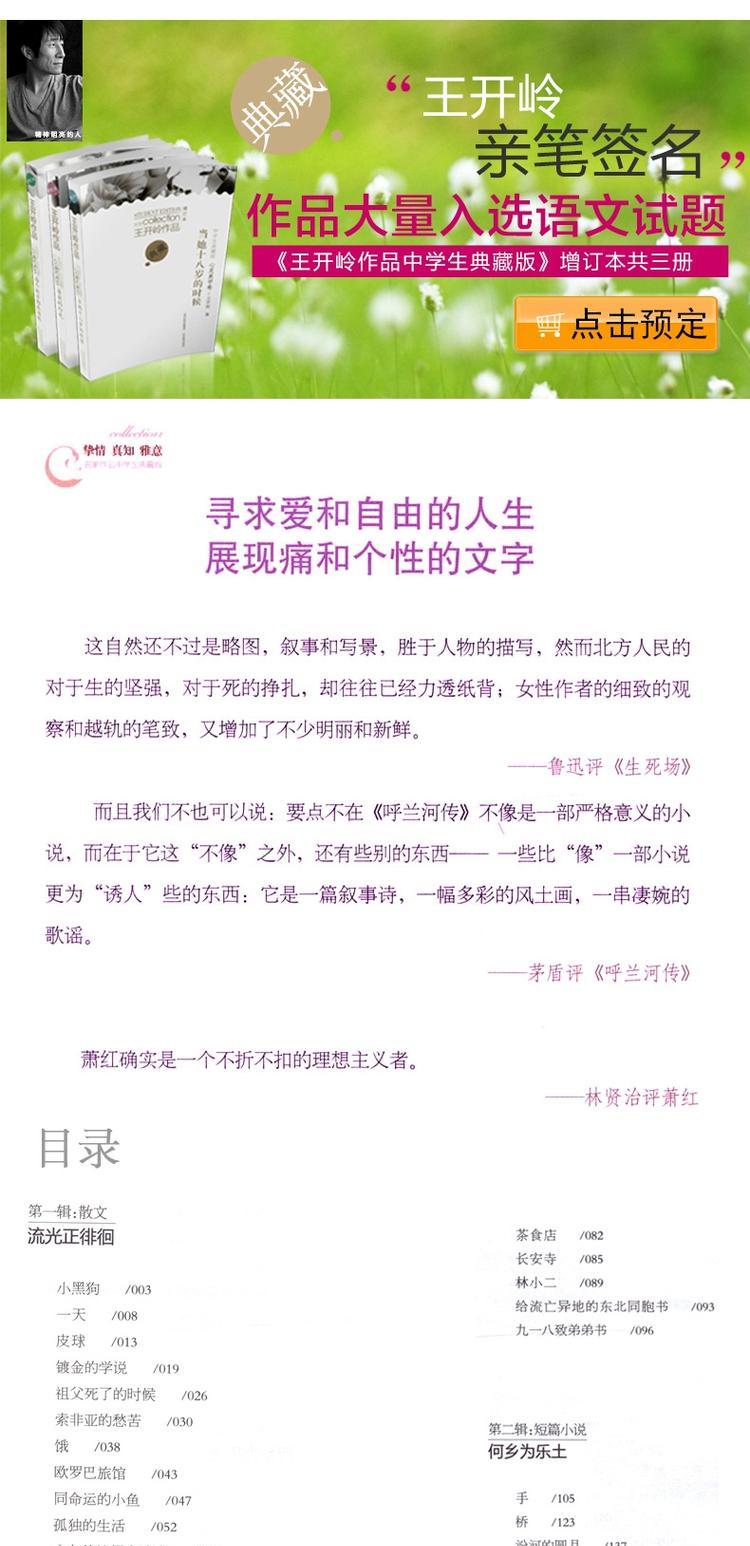 正版包邮 萧红作品 永久的憧憬和追求 中学生典藏版 暑假读物 山西教育出版社出版