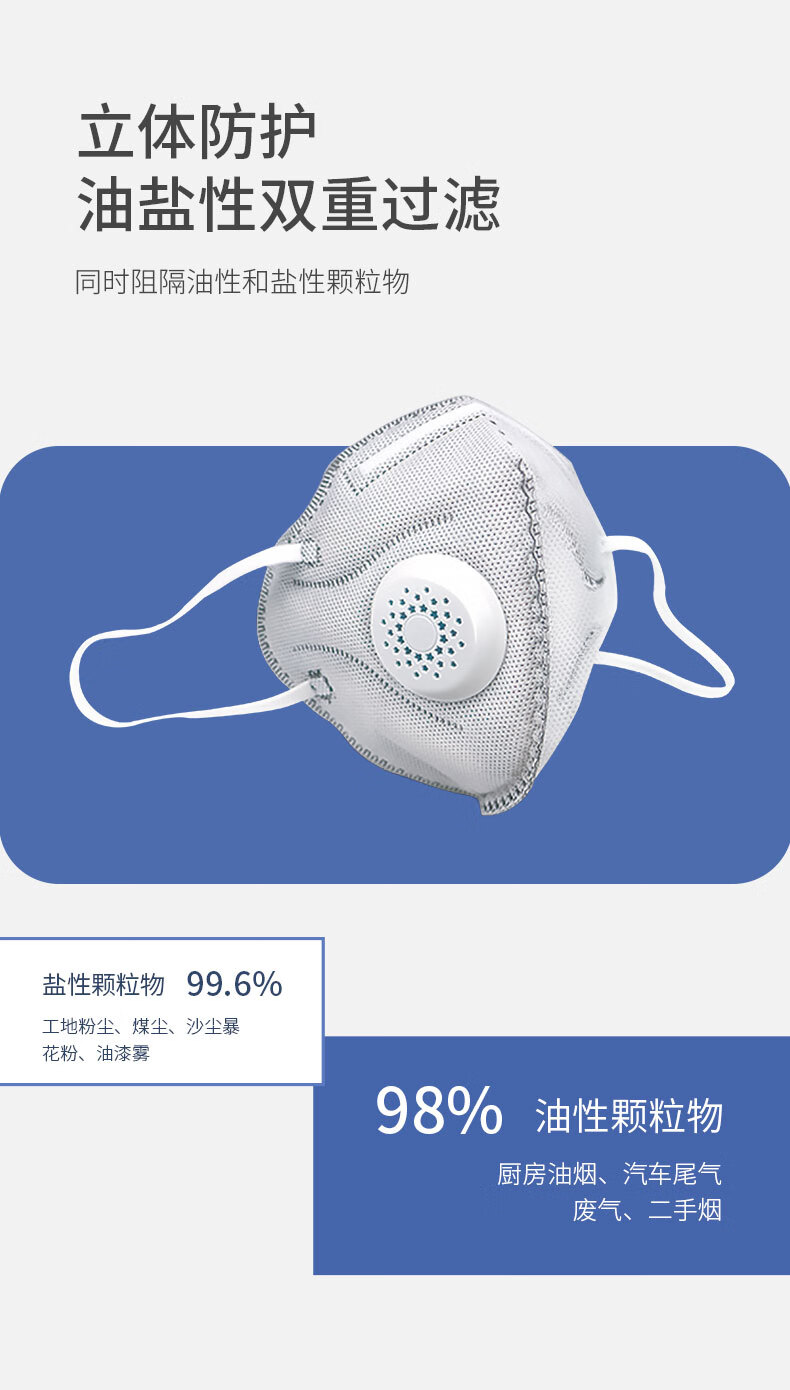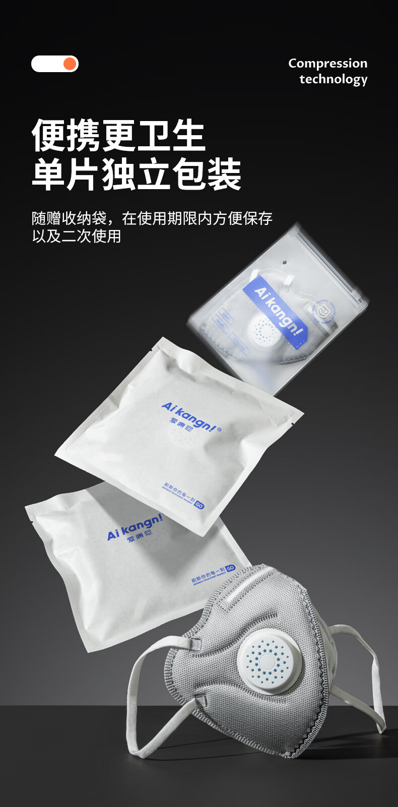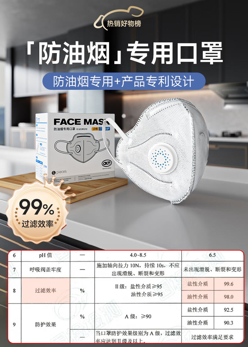 爱康尼 活性炭防油烟口罩厨房专用防甲醛防粉尘二手烟异味防雾霾灰尘专用口罩带冷流呼吸阀 6枚 100109082694