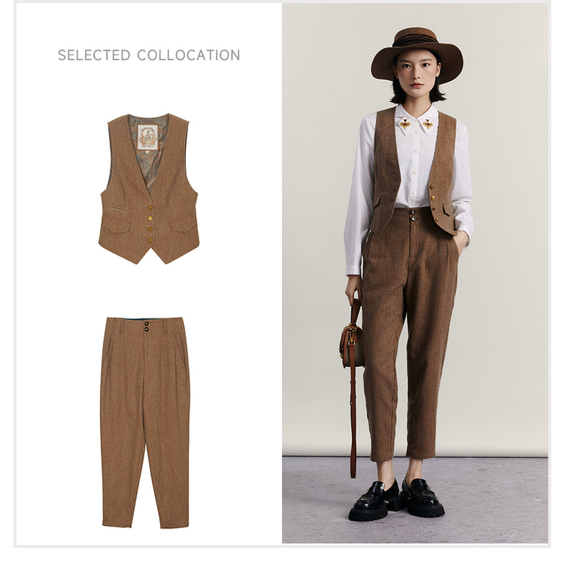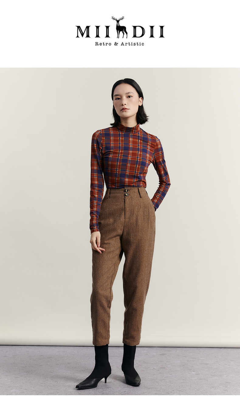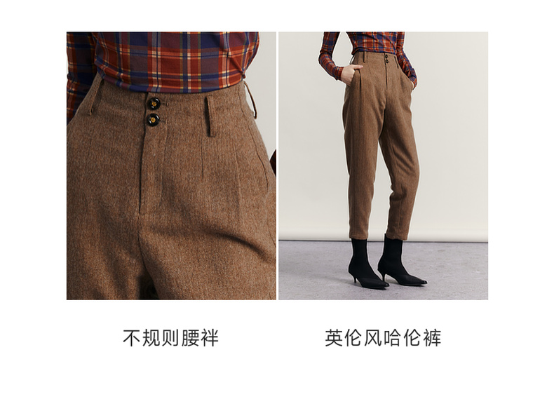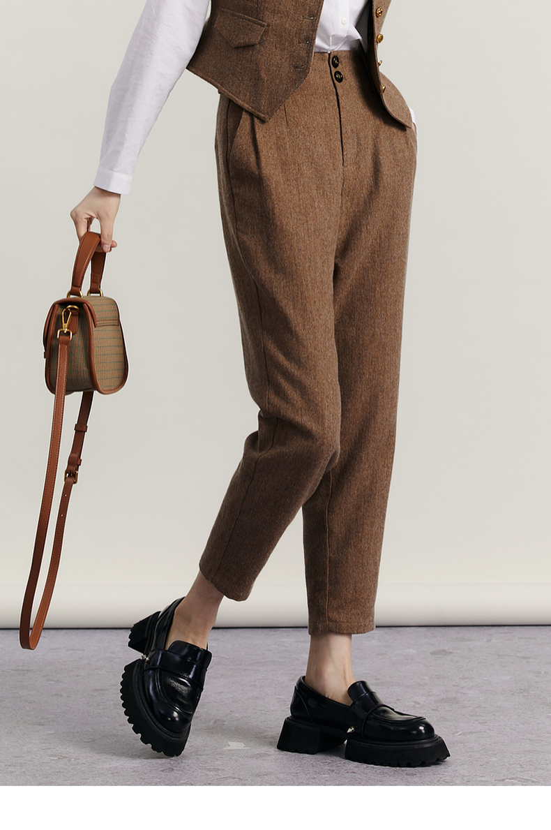 谜底毛呢萝卜裤女士2023冬季新品复古百搭保暖九分裤女234MK1529