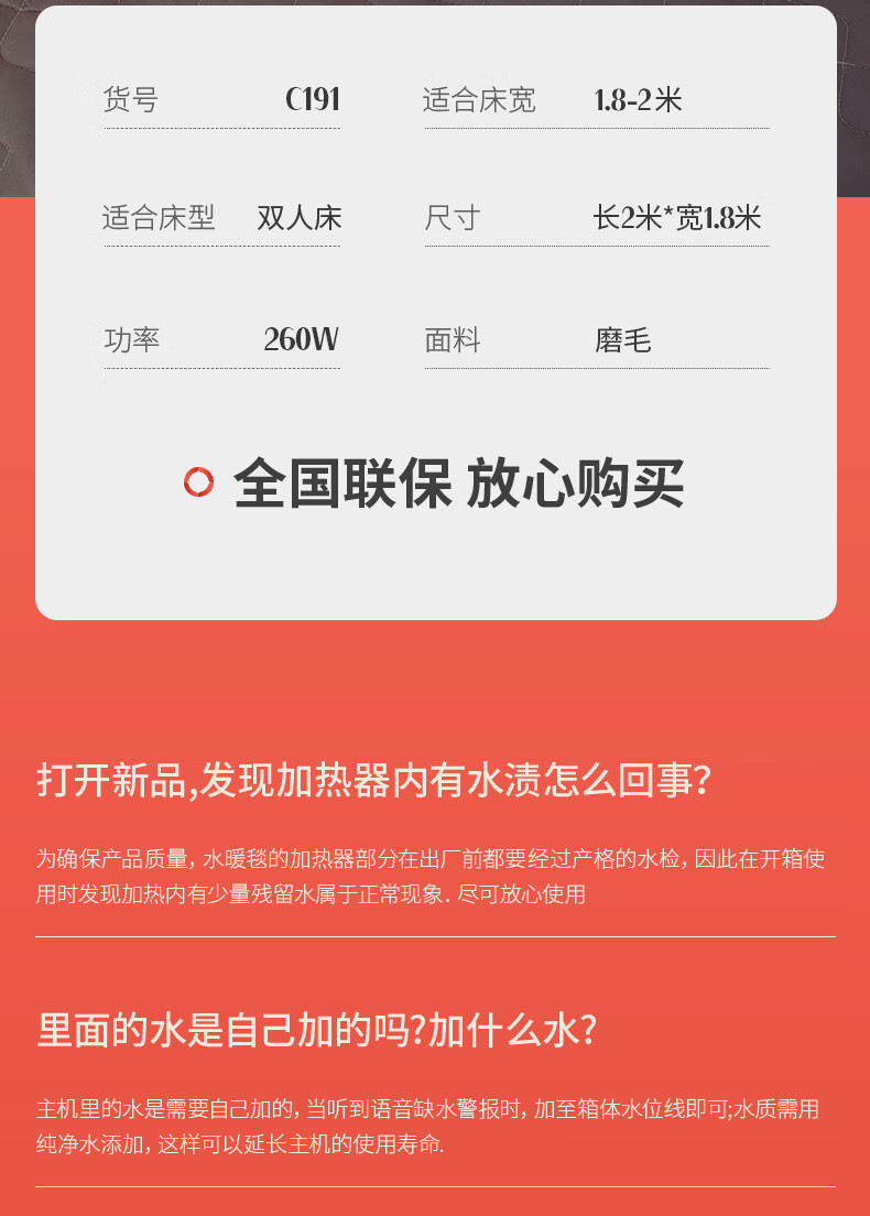 彩虹恒温水暖毯(大床)磨毛面料2米*1.8米,灰色C191