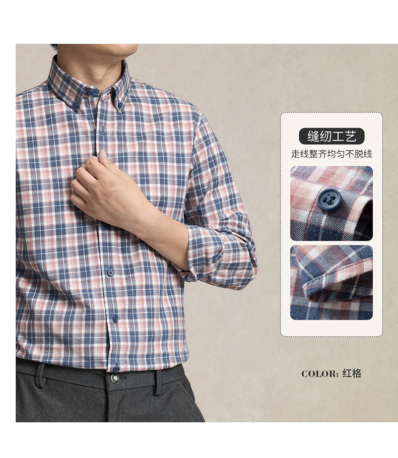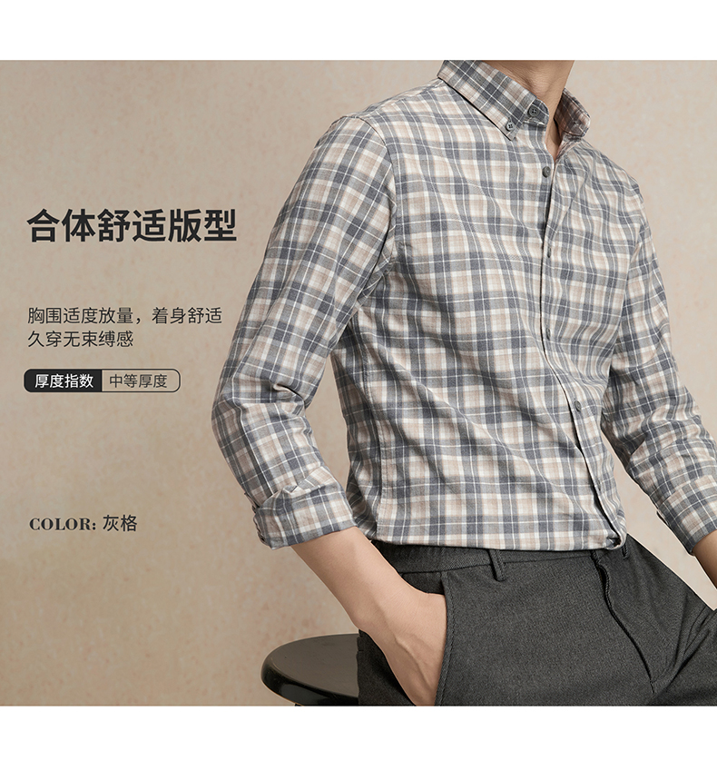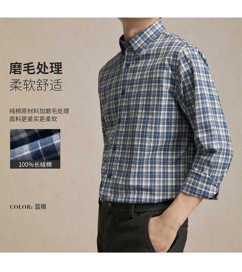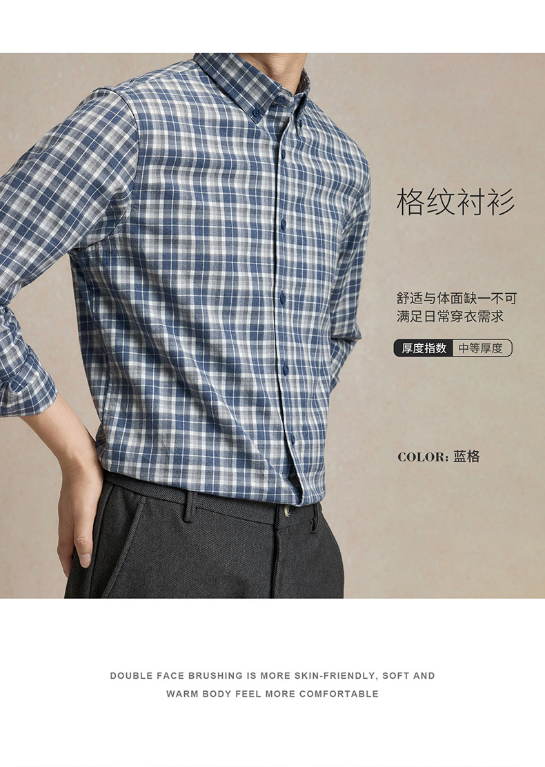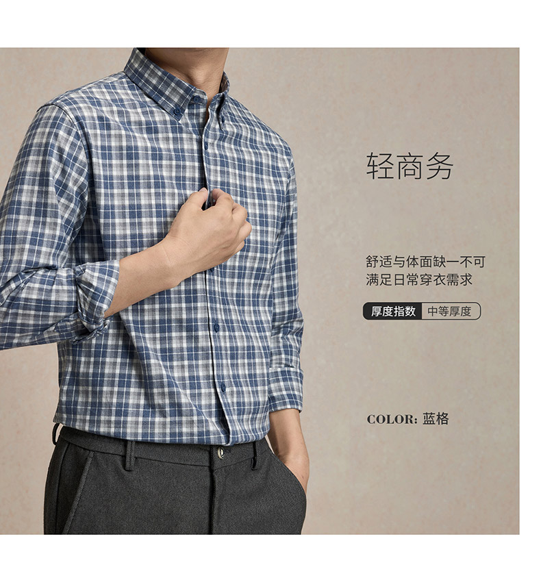 【全棉】罗蒙秋冬厚款长袖衬衫男士柔软亲肤舒适轻商务风长袖衬衣
