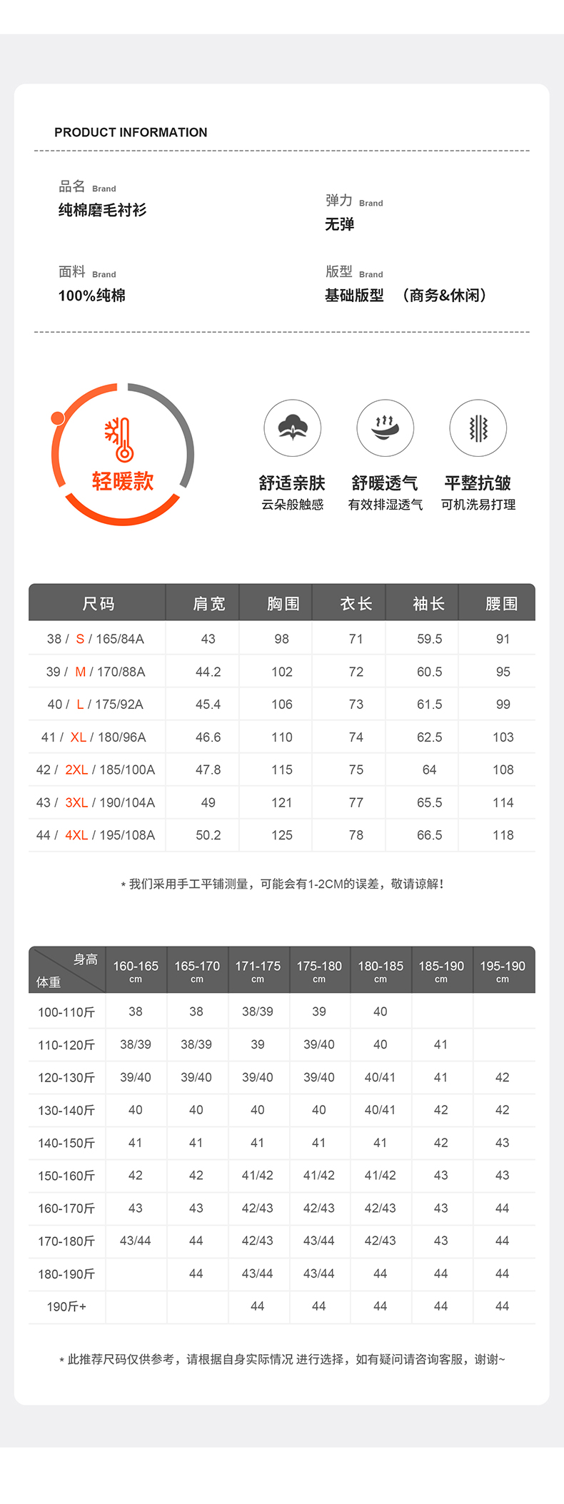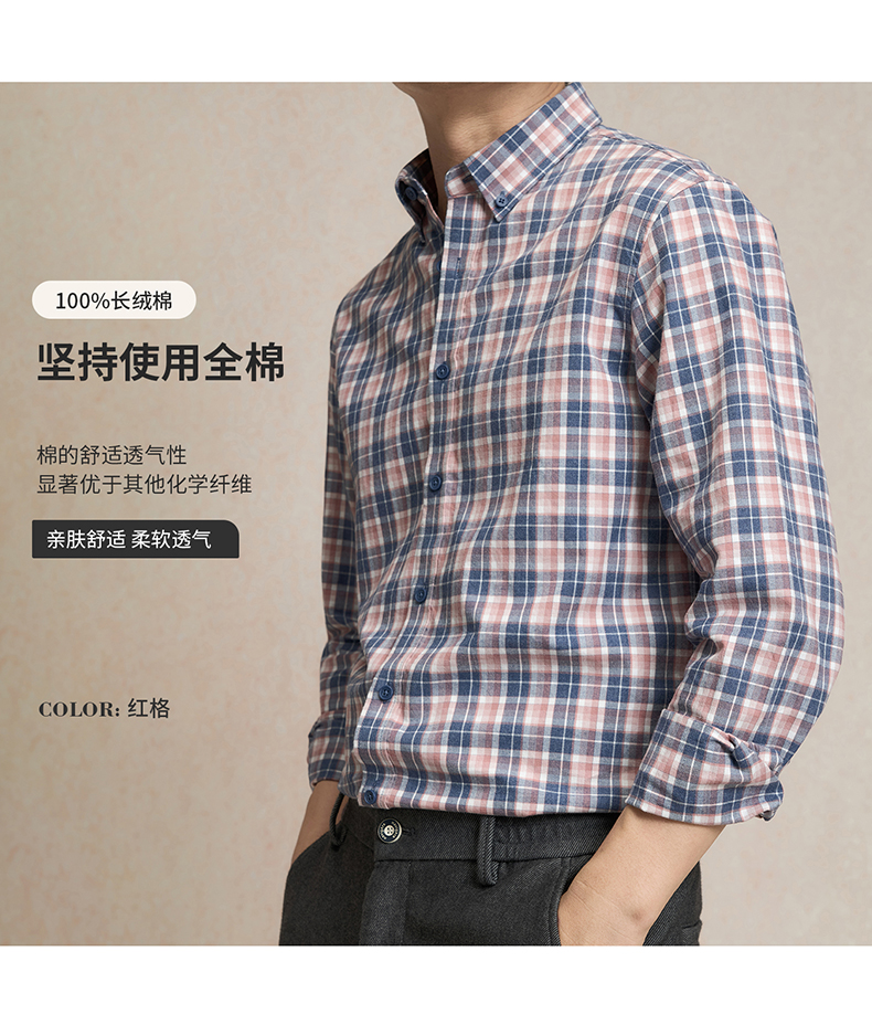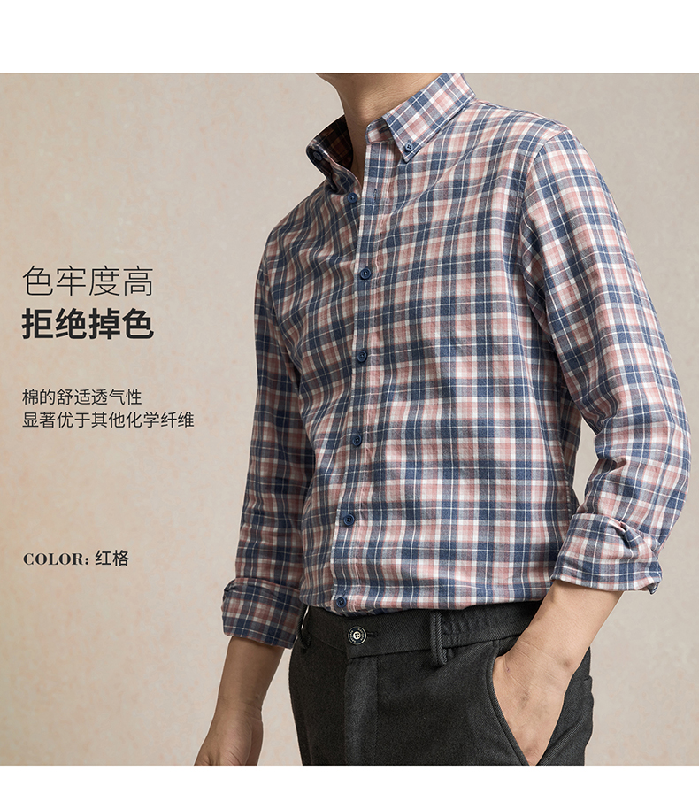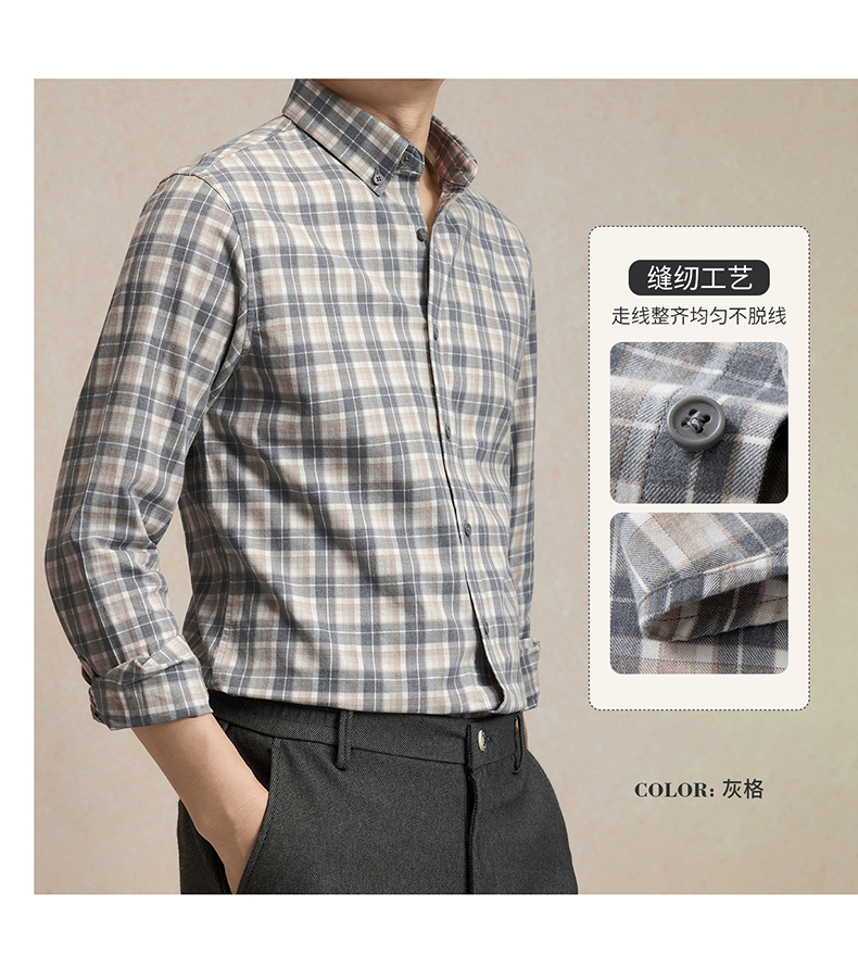 【全棉】罗蒙秋冬厚款长袖衬衫男士柔软亲肤舒适轻商务风长袖衬衣