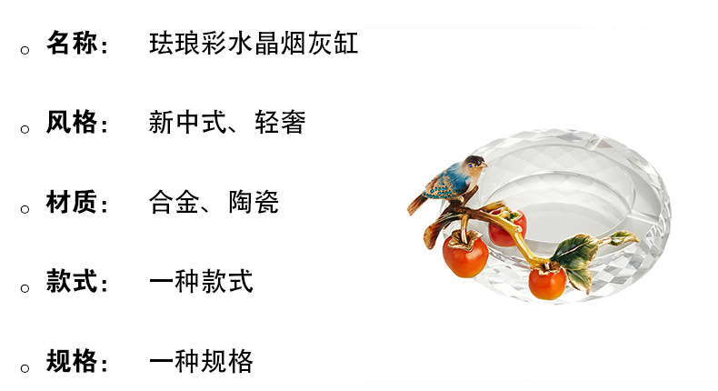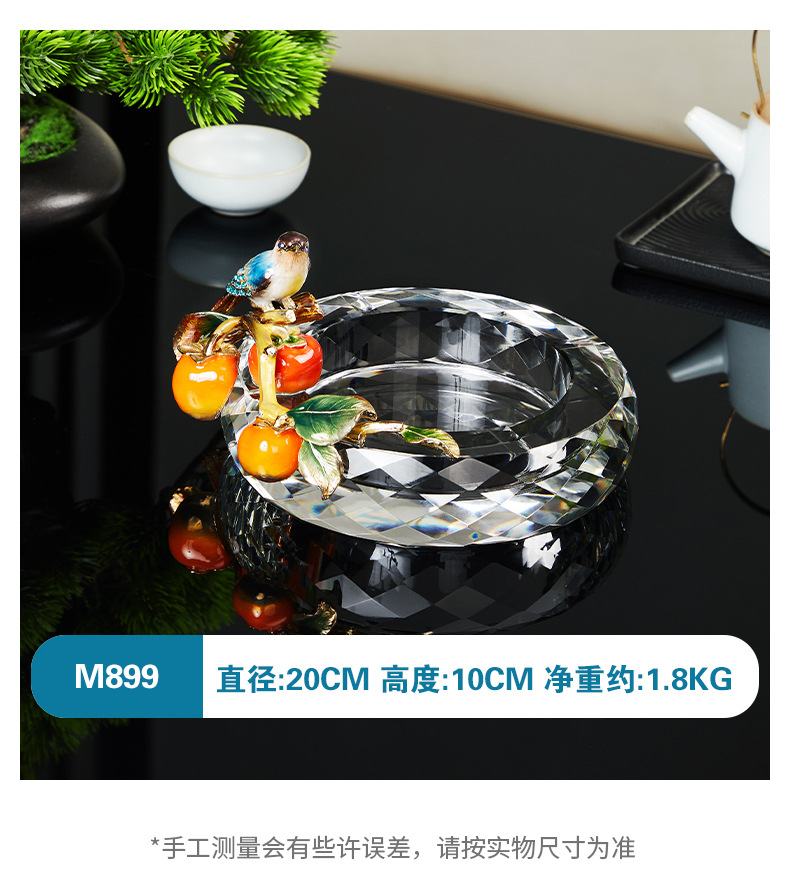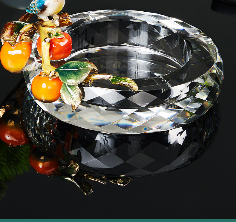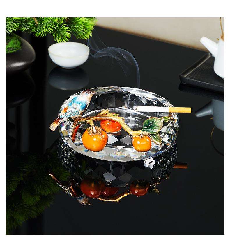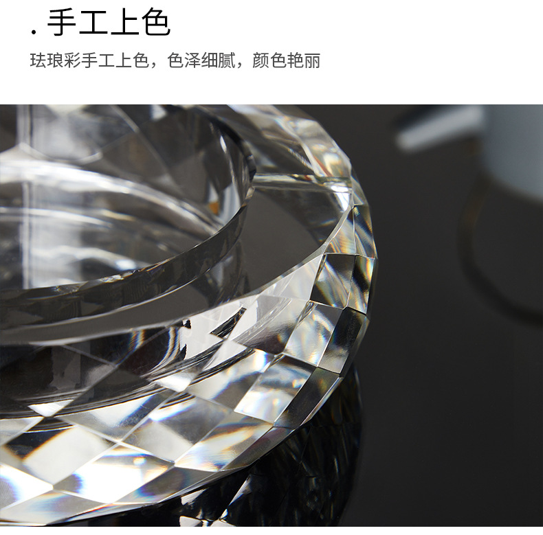 玻璃水晶烟灰缸家用客厅现代酒店会所创意装饰办公室轻奢灰杠 珐琅彩事事如意烟灰缸