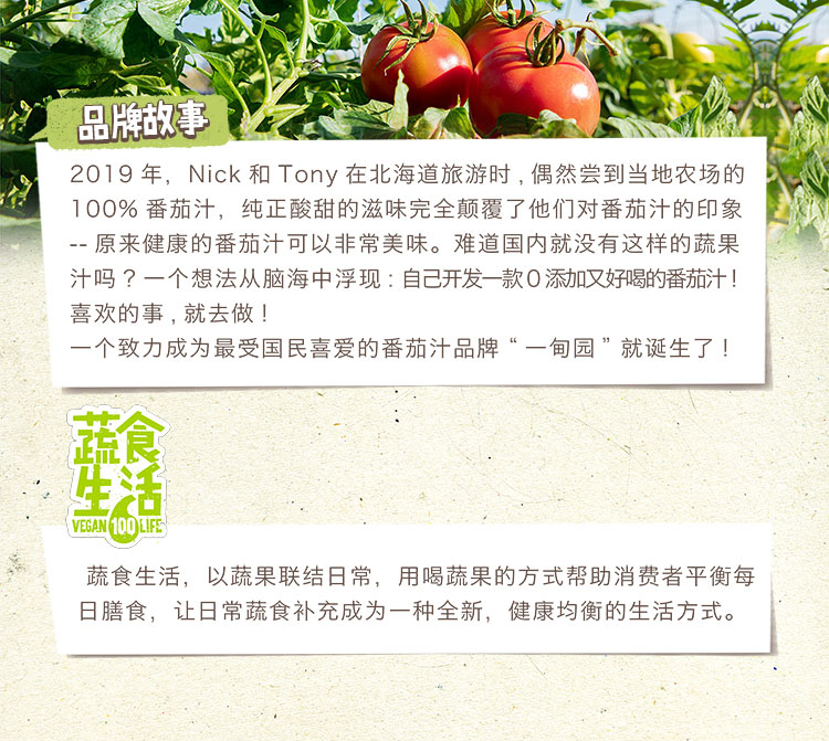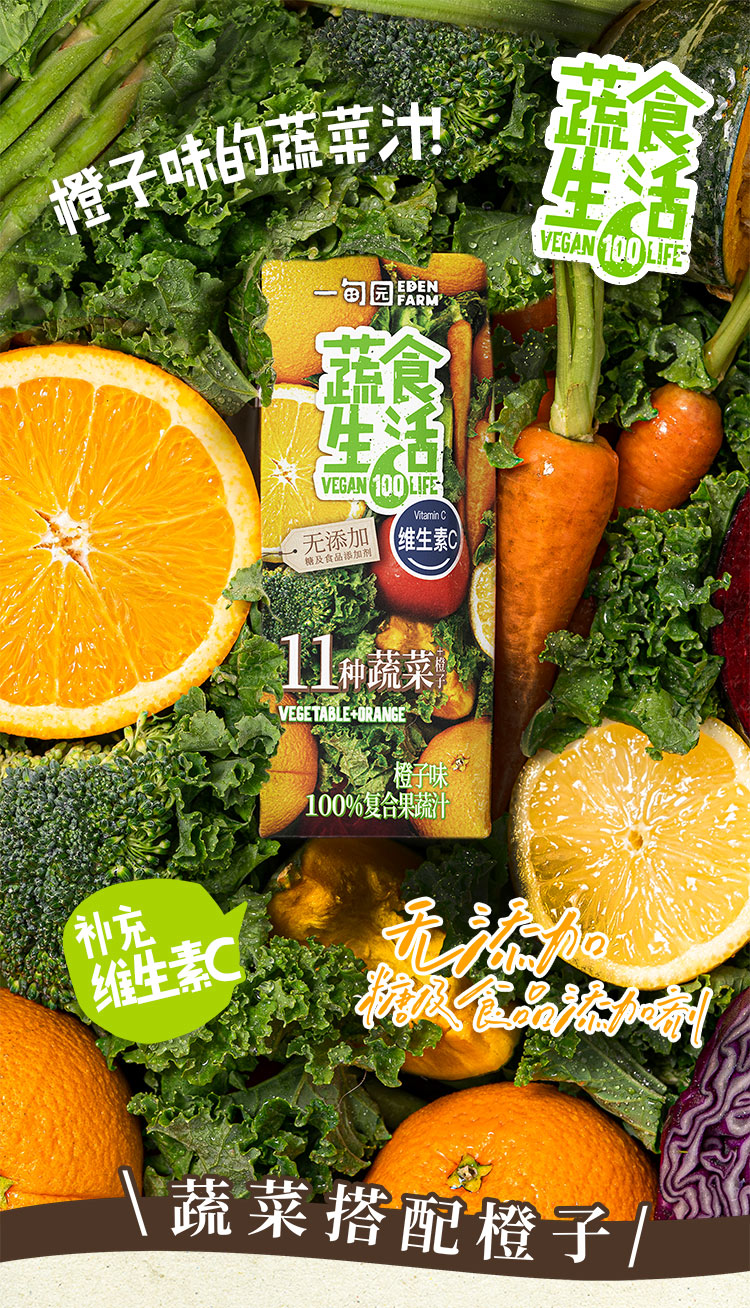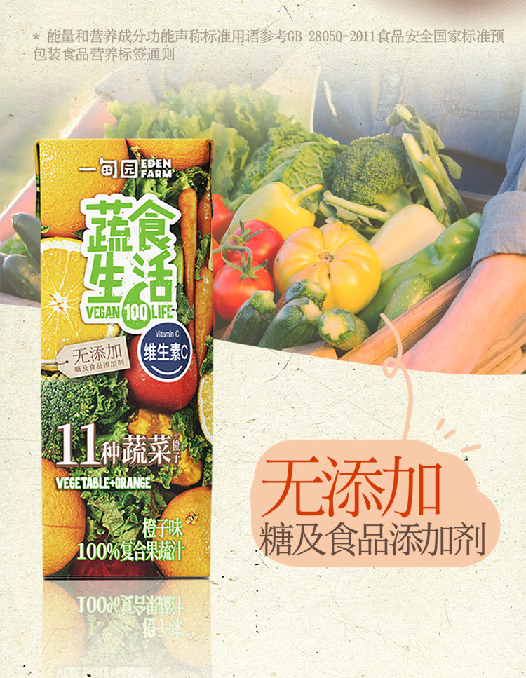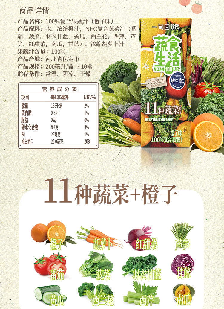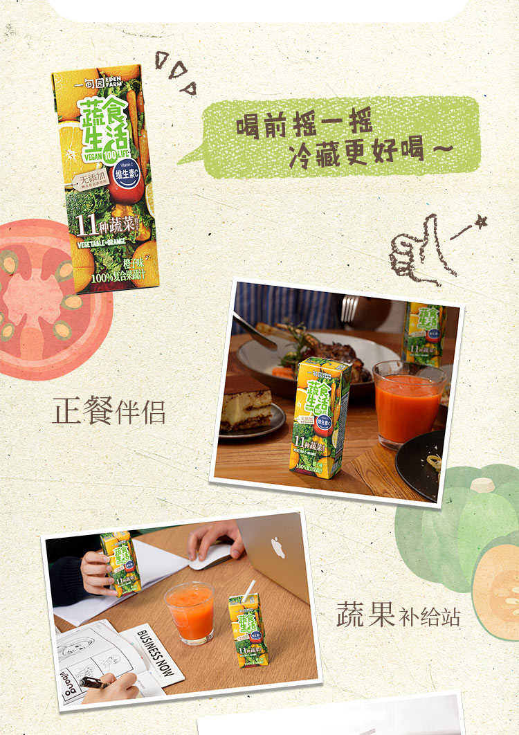 一甸园 蔬食生活100%复合果蔬汁(橙子味)200ml*10