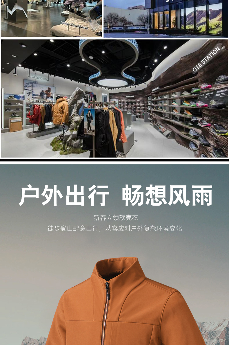 【精选】01E STATION情侣户外立领软壳衣夹克外套(5色可选) 时尚百搭男女同款科技面料防风防水透气不闷
