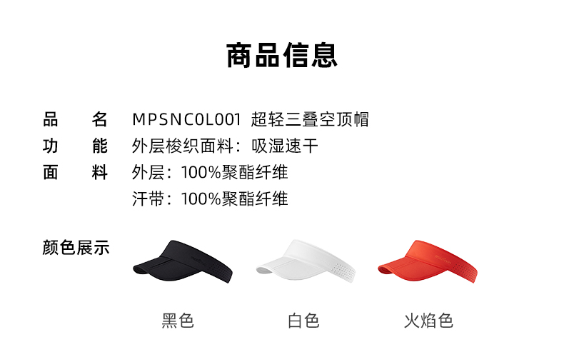 马孔多超轻三叠空顶帽 均码 吸湿速干 遮阳透气 内圈导汗带 可折叠如手机大小携带方便