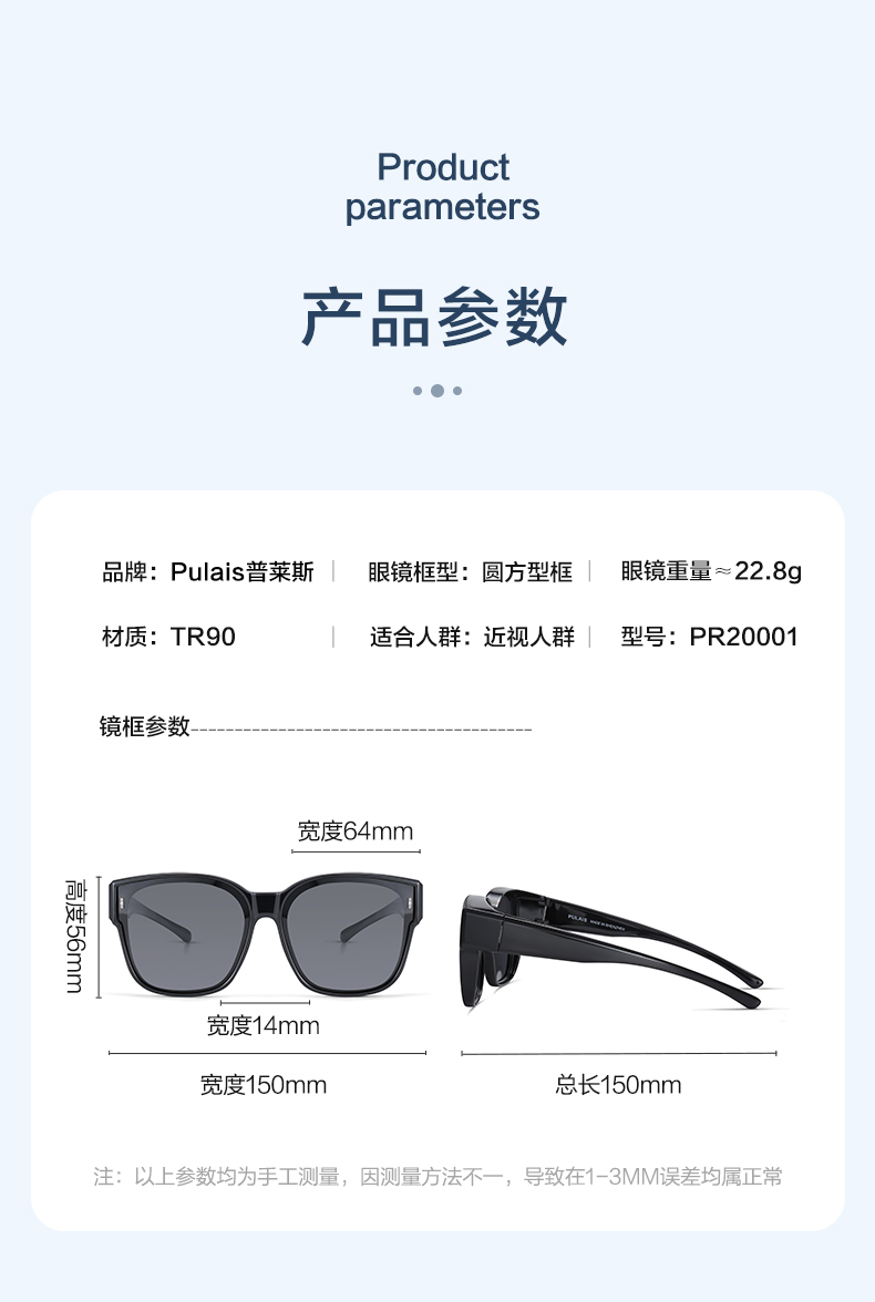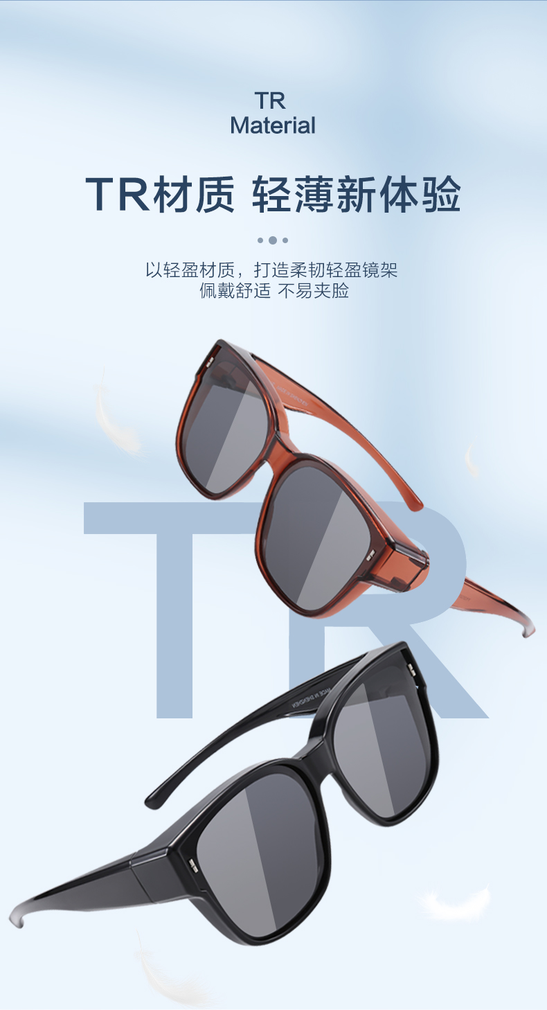 普莱斯PR20001 TR90 近视人群专用太阳镜 圆方型框