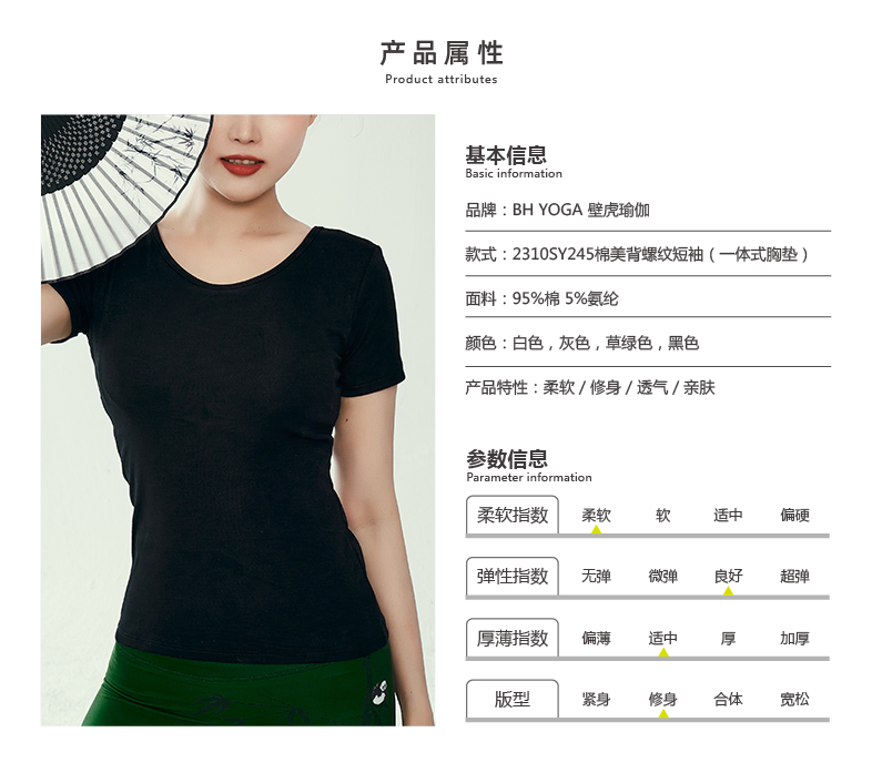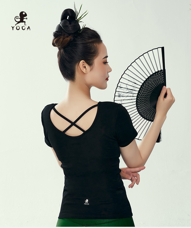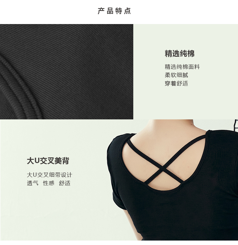 壁虎瑜伽【2310SY245】棉美背螺纹短袖(一体式胸垫)(5天发货)