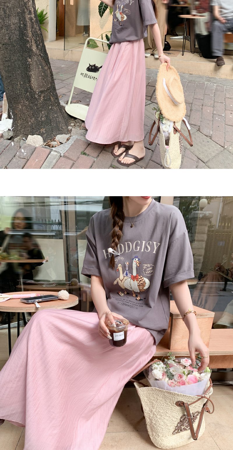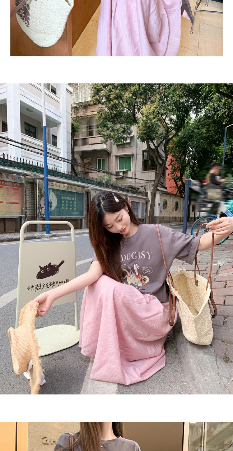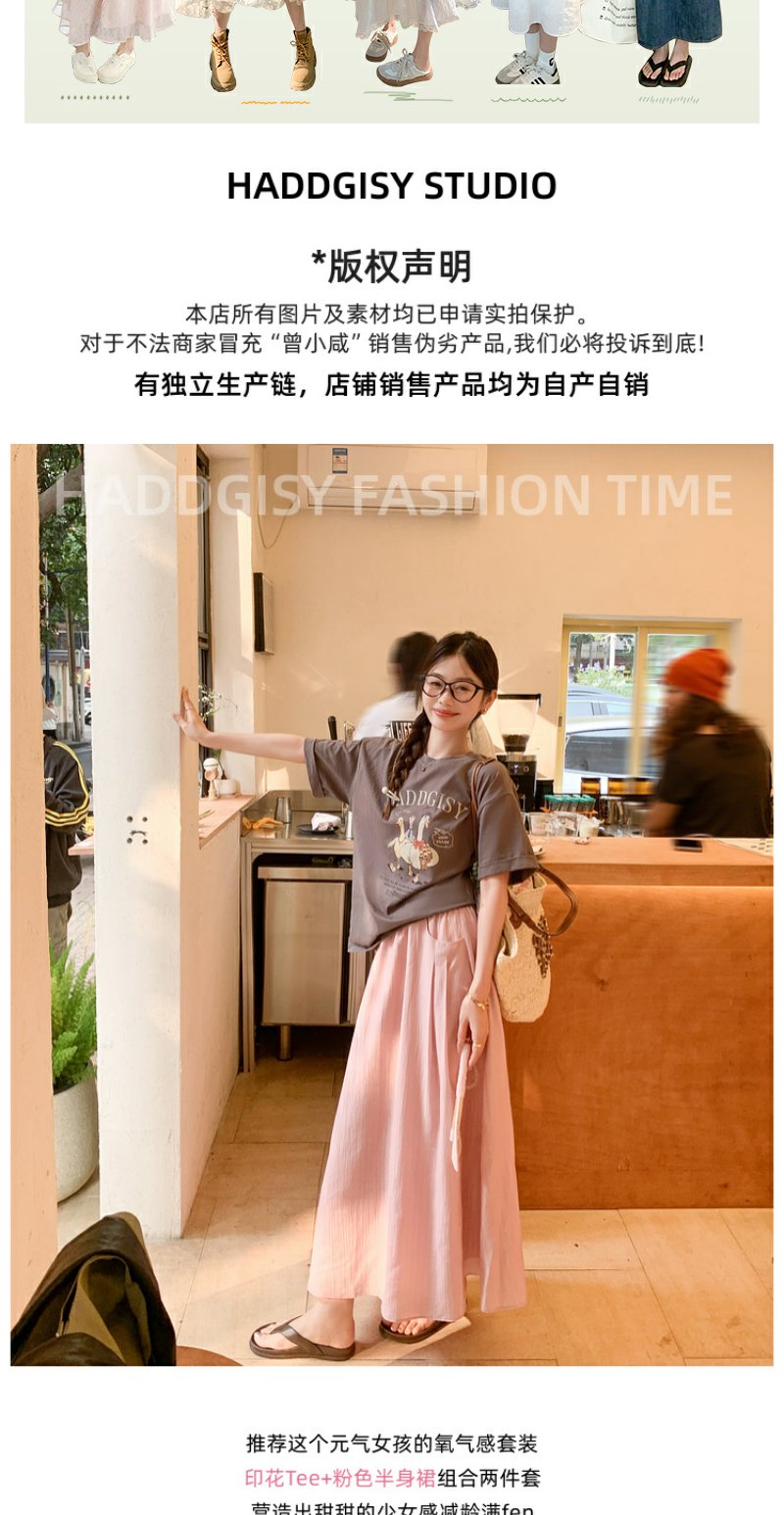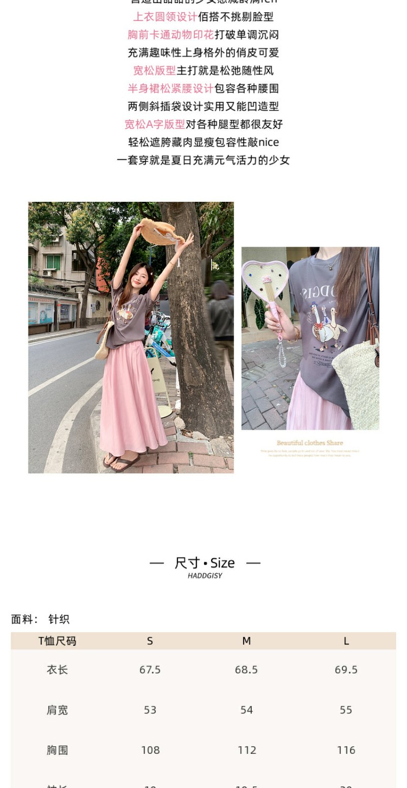 <曾小咸推荐>微信粉丝秒杀专场 仅此今天 活动结束下架【温柔甜妹】灰色印花T恤/粉色半裙 短袖日常89.99 立降45.09 元 今天秒杀价44.9 !!