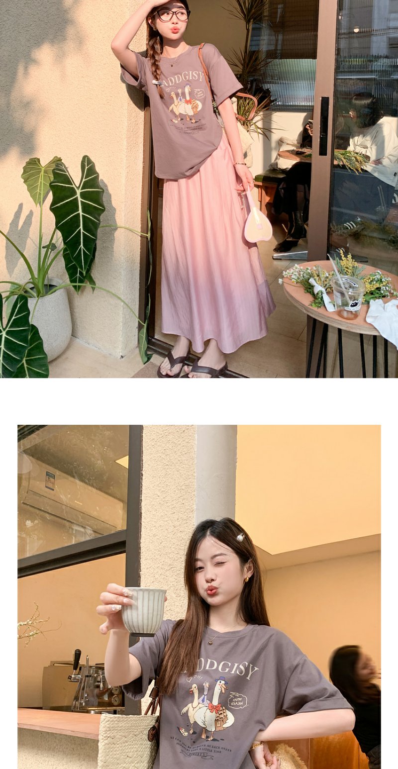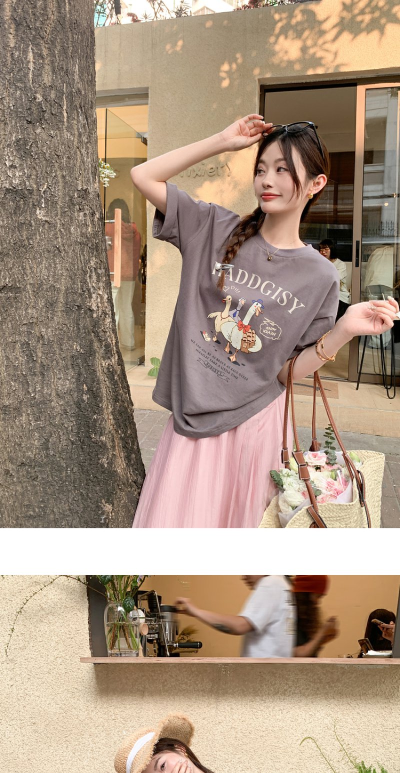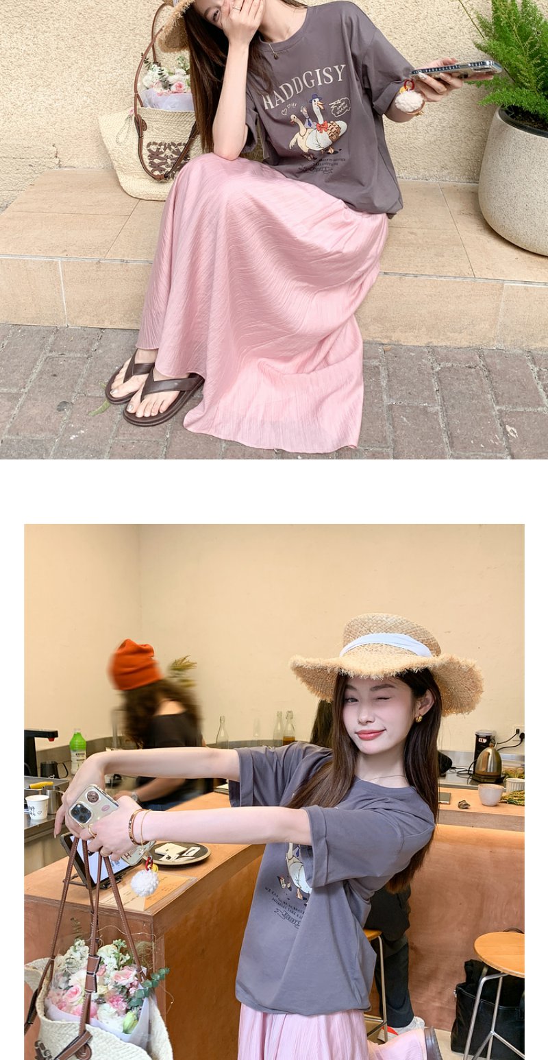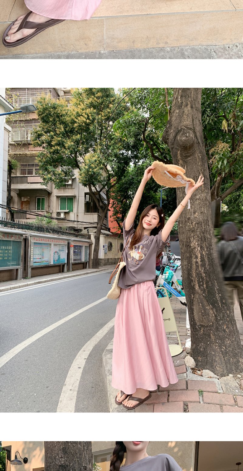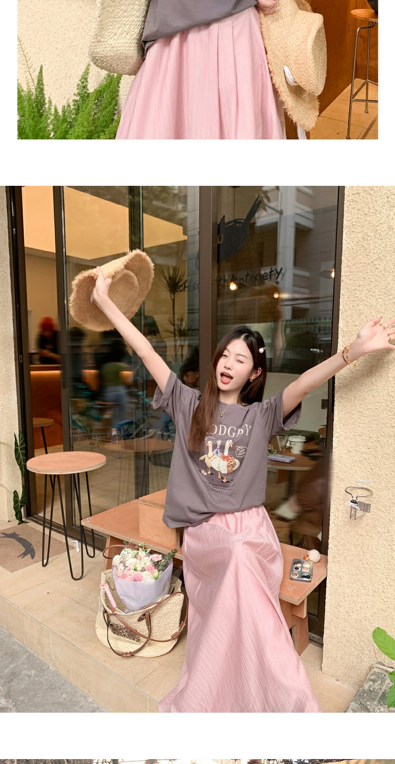 <曾小咸推荐>微信粉丝秒杀专场 仅此今天 活动结束下架【温柔甜妹】灰色印花T恤/粉色半裙 短袖日常89.99 立降45.09 元 今天秒杀价44.9 !!