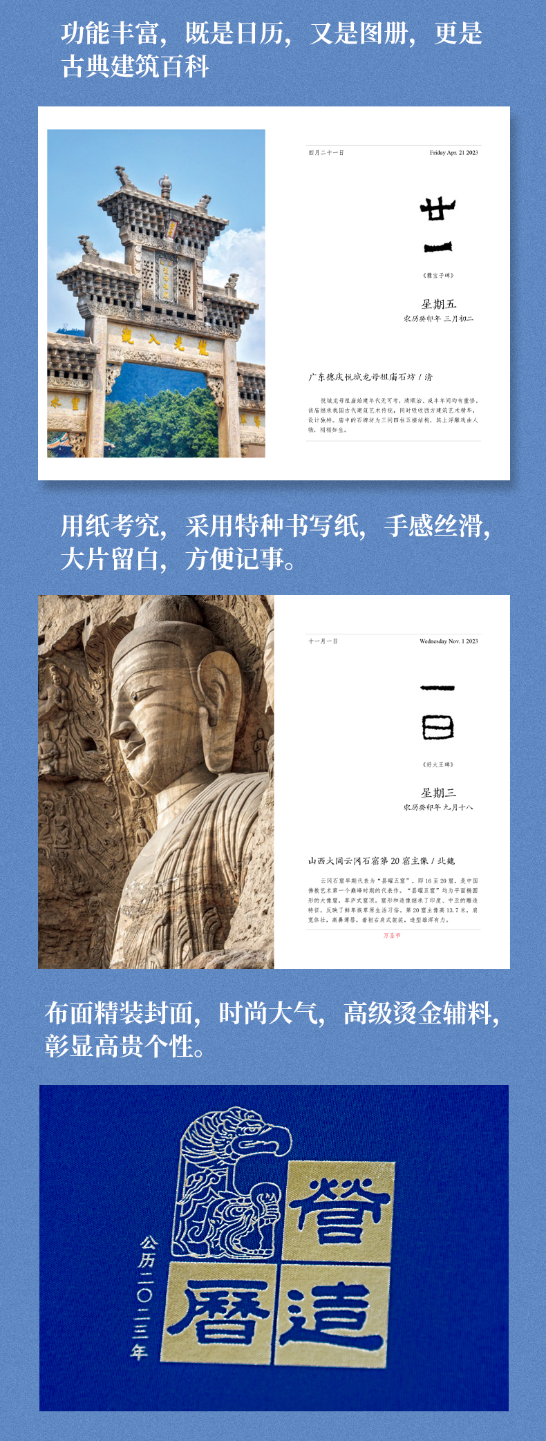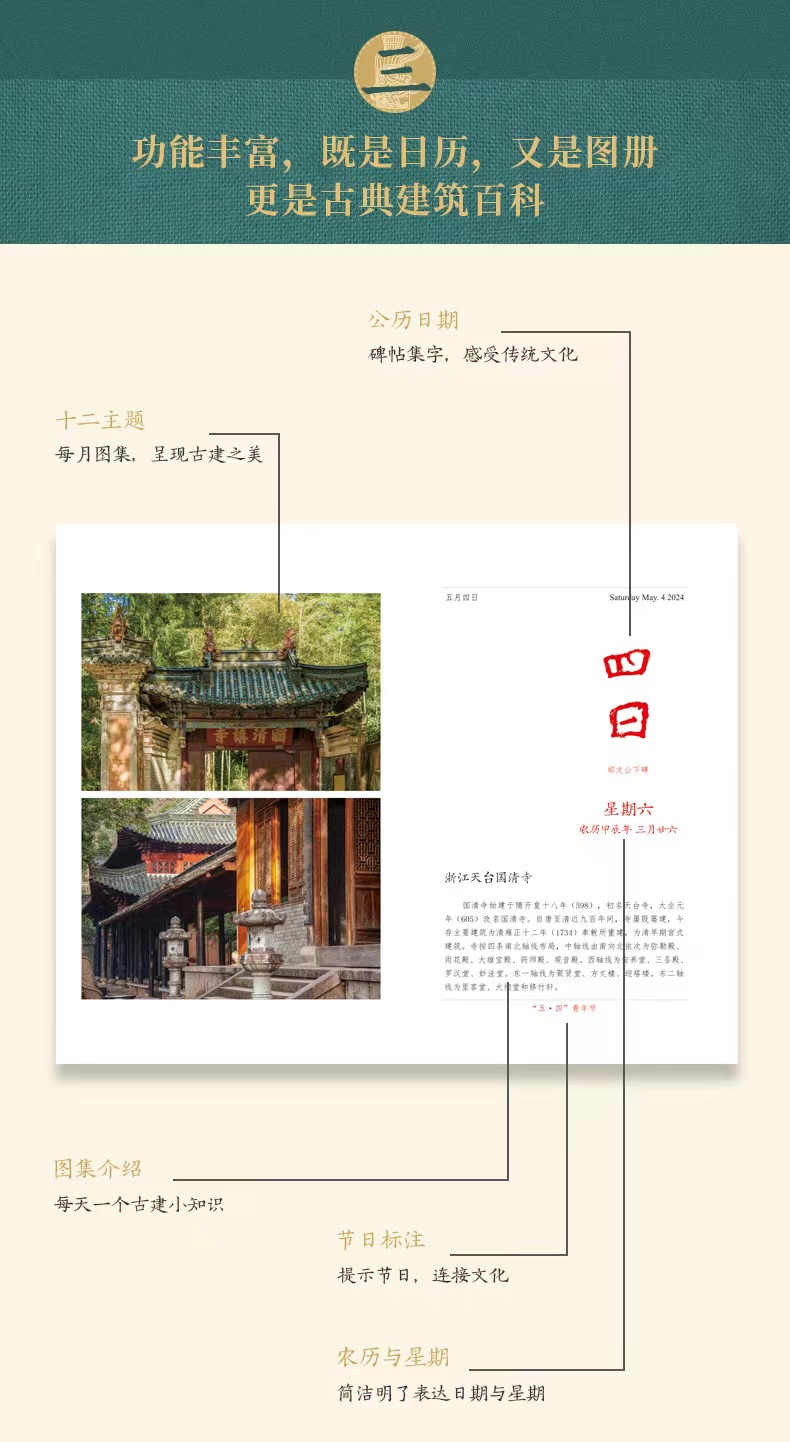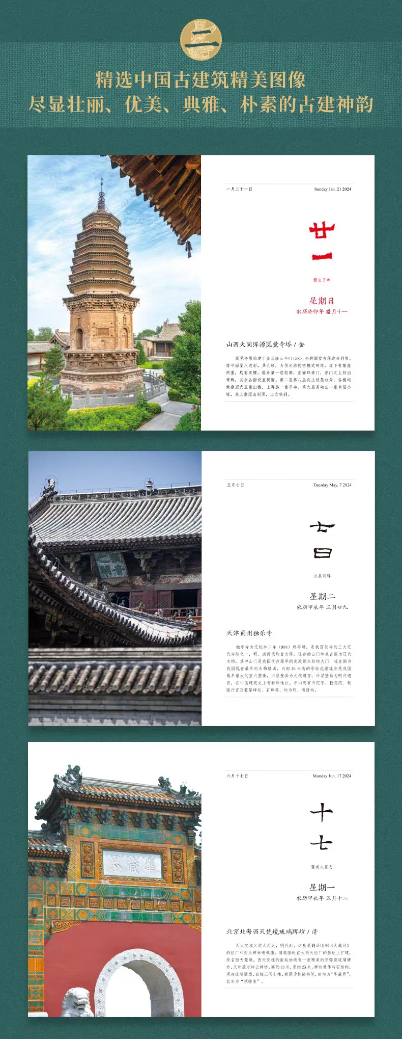 营造历2024年古建筑艺术日历国潮历史独乐纪念礼(2024年龙年日历可免费盖章下单可备注)