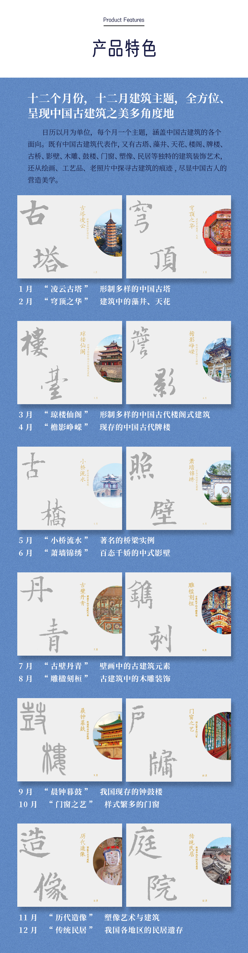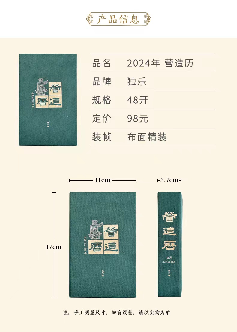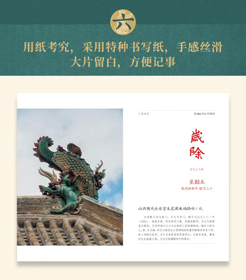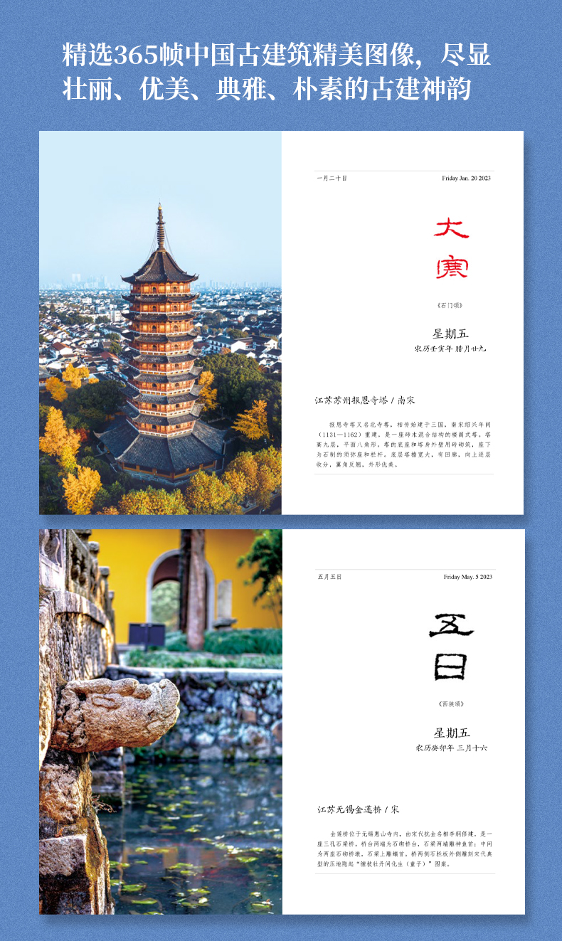 营造历2024年古建筑艺术日历国潮历史独乐纪念礼(2024年龙年日历可免费盖章下单可备注)