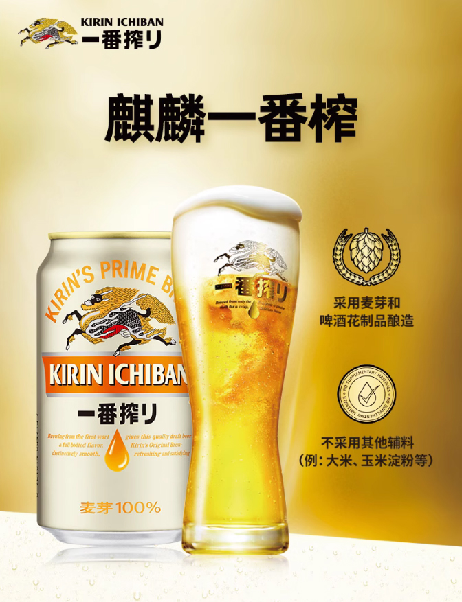 【商品名称】日本KIRIN/麒麟啤酒一番榨系列330ml/罐