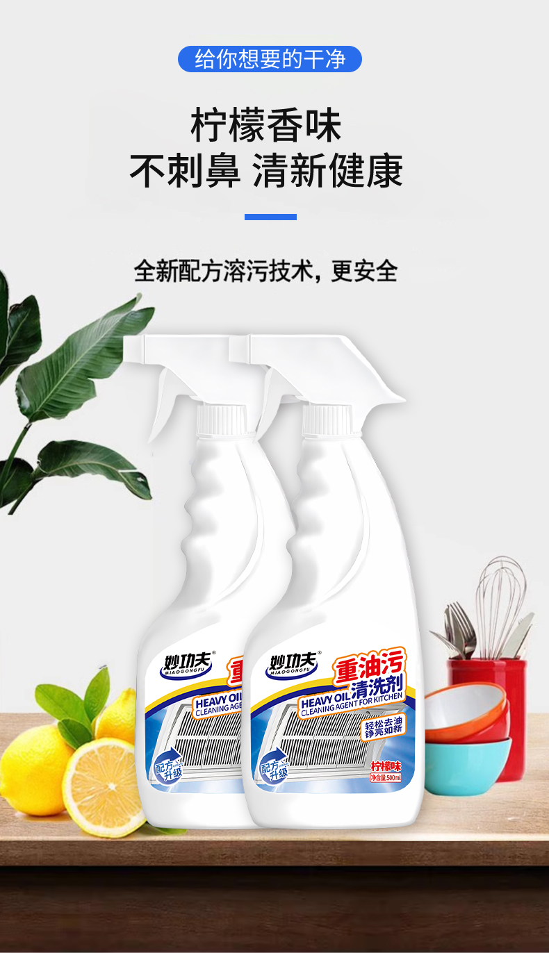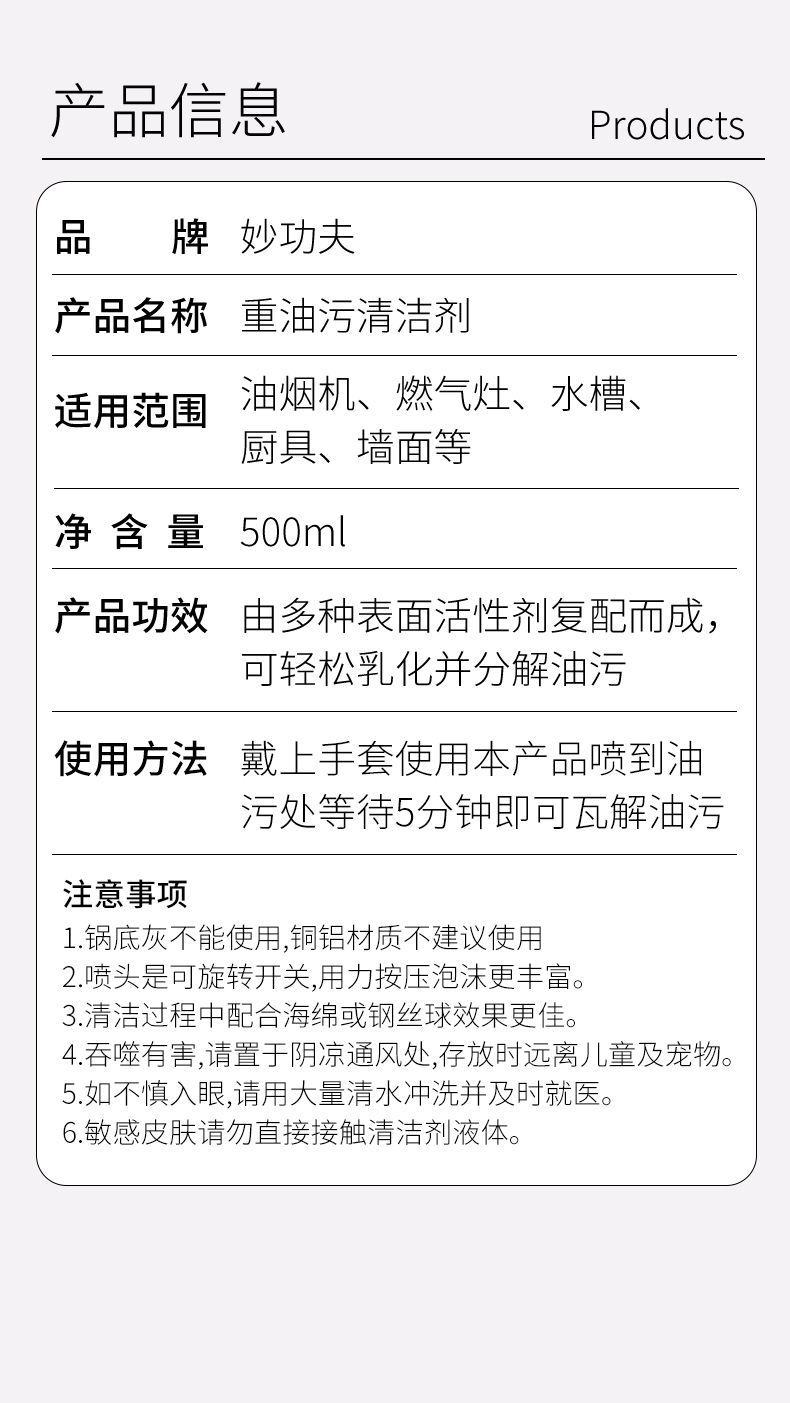 【自营】妙功夫 重油污清洗剂500ml*2瓶(一个喷头)