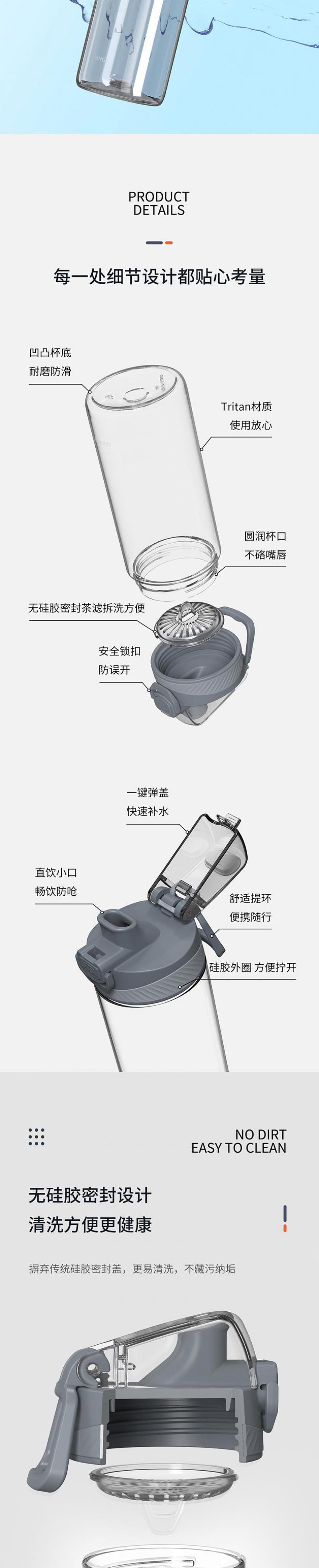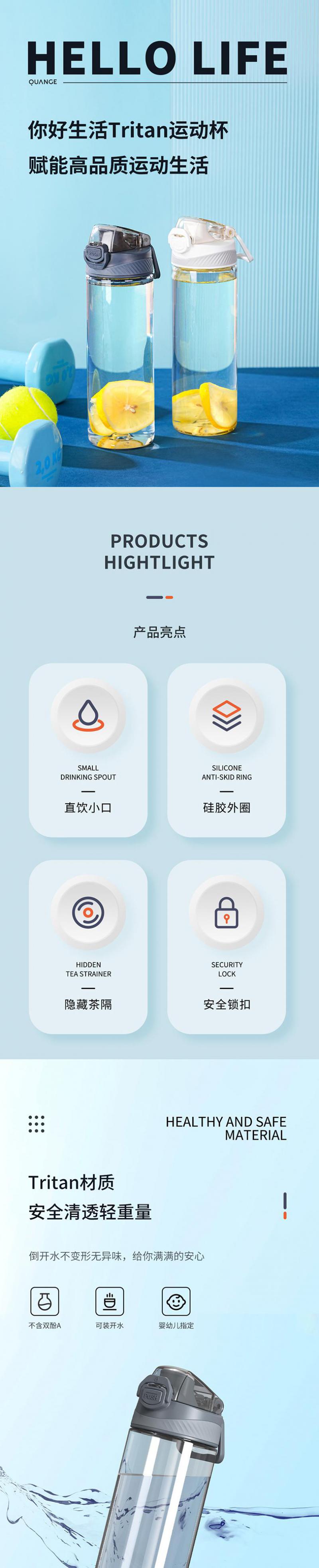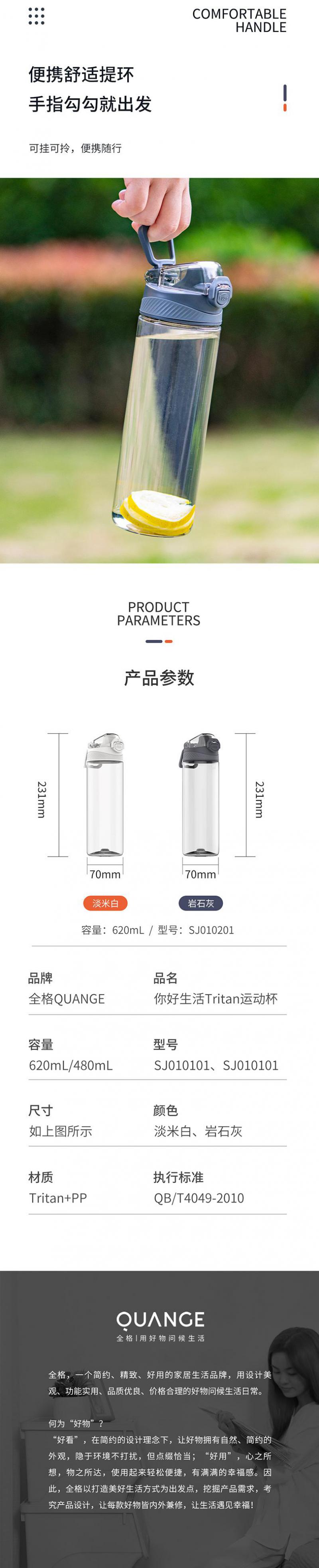【自营】全格 你好生活Tritan运动杯子水杯 620ml SJ010201
