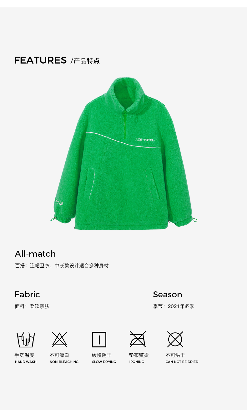 YKYB羊羔毛外套女秋冬时尚百搭套头情侣上衣