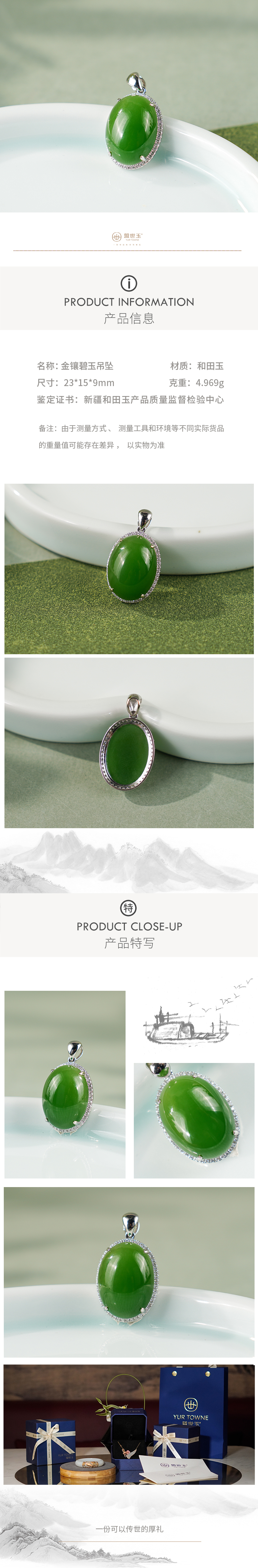 【春鸾】18K白金碧玉蛋面吊坠